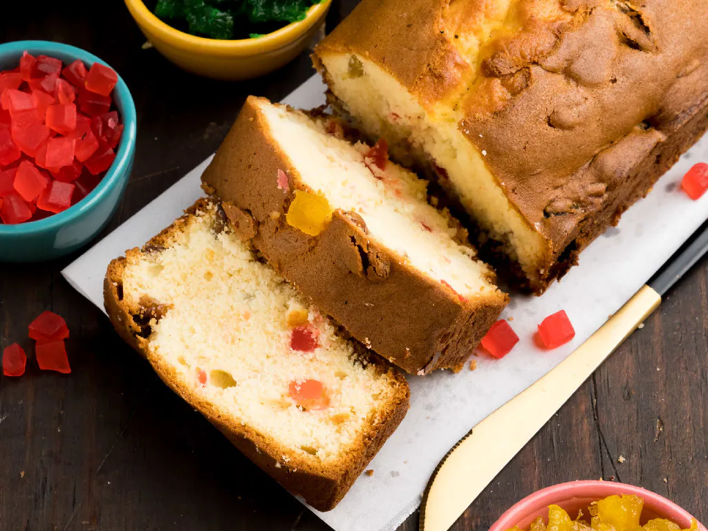 Classic vanilla base tea time cake with tutti frutti and a hint of lemon.