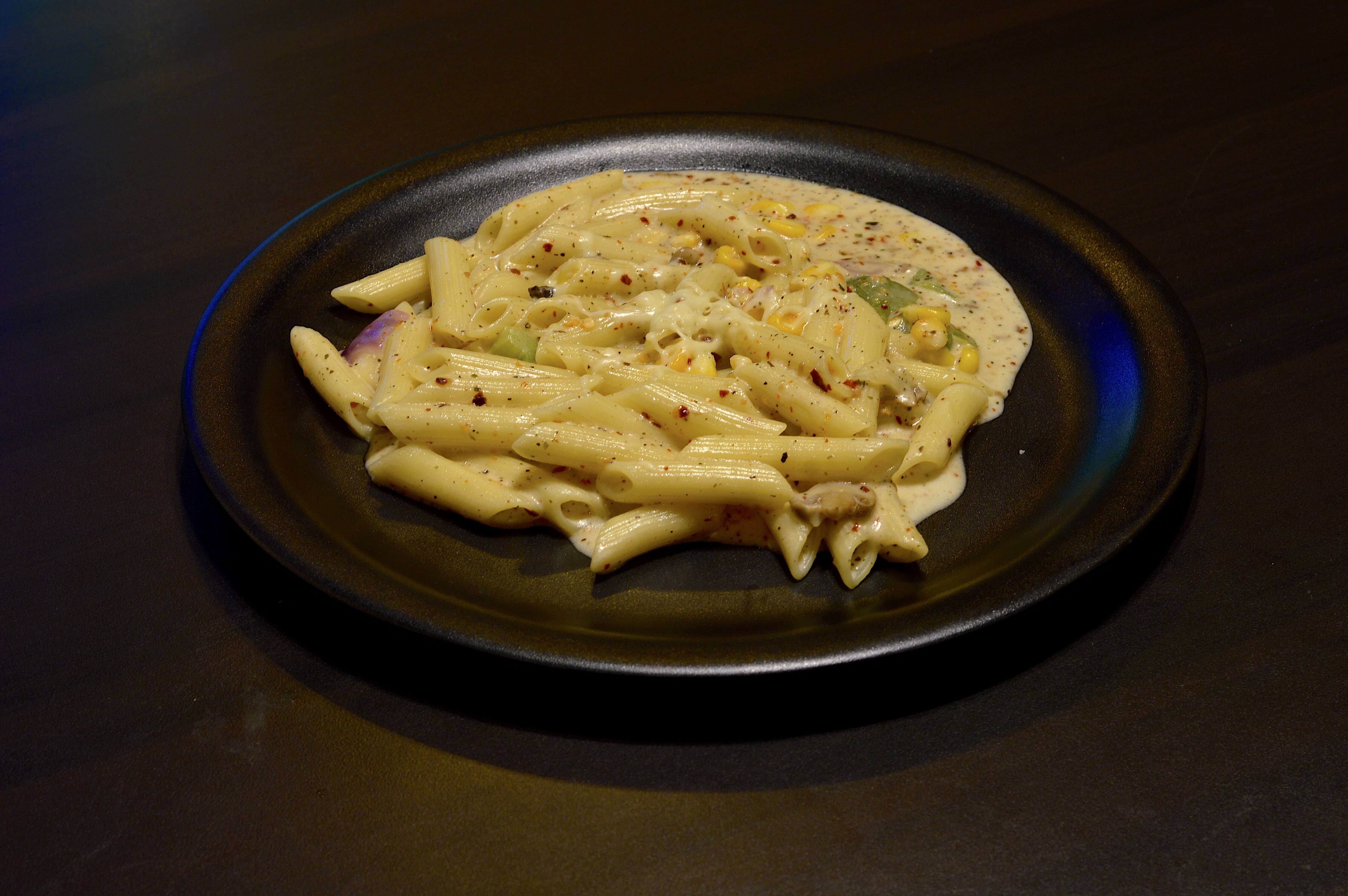 Is a spicy sauce for pasta made from garlic, tomatoes, and dried red chili peppers cooked in oil.