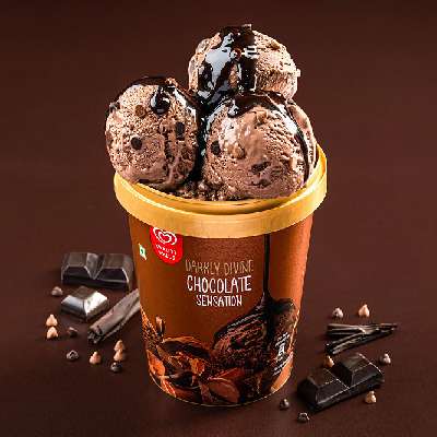 A yummilicious duo of rich and creamy vanilla topped with chocolate sauce and chocochips in a crunchy waffle cone