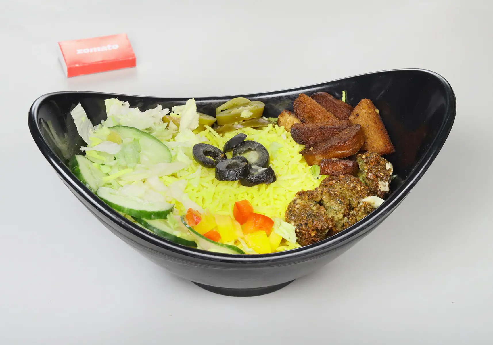 Basmati Rice+Shredded Chicken+Hummus+Salad+Garlic Sauce+Pickles [Subject to Availability]