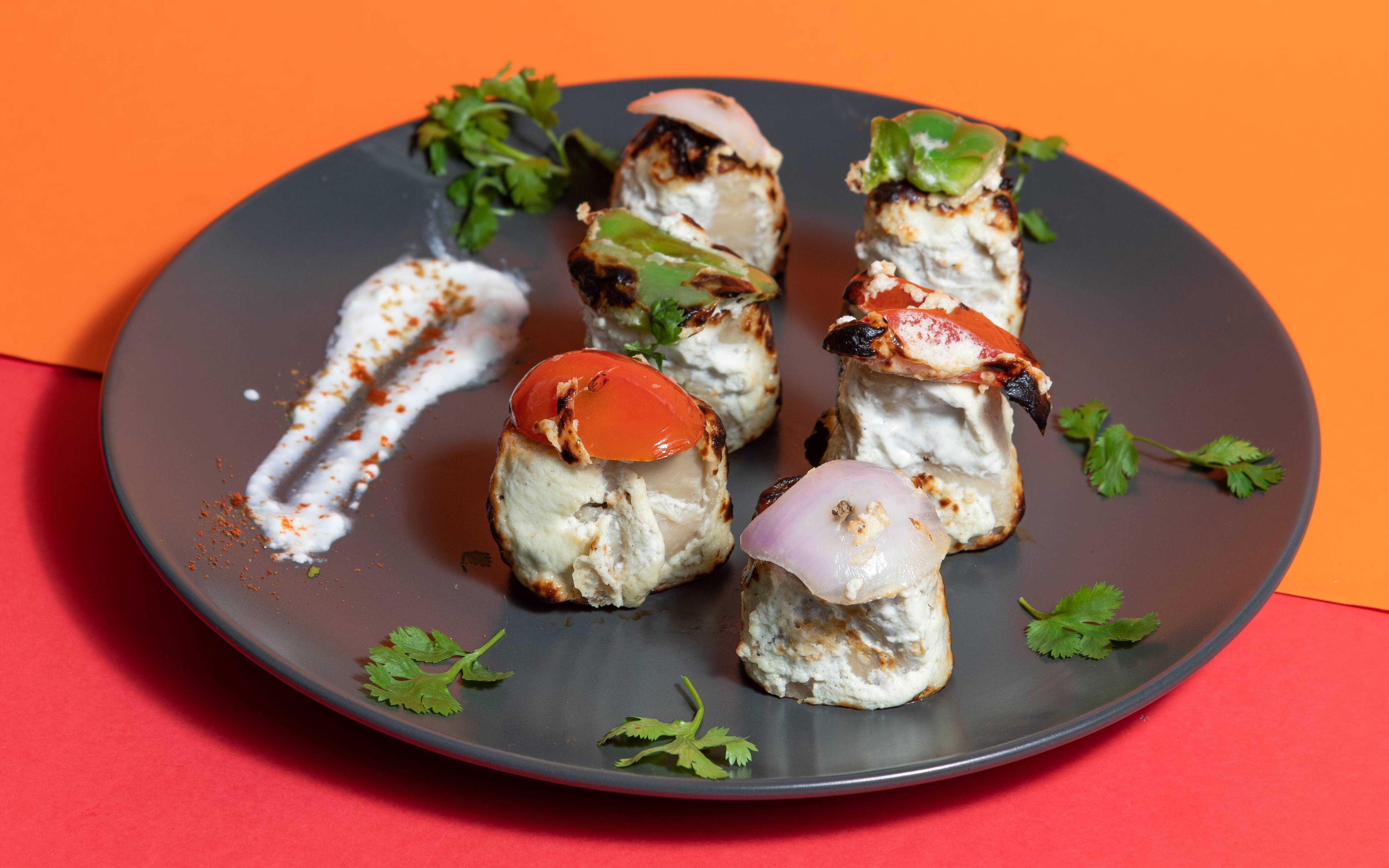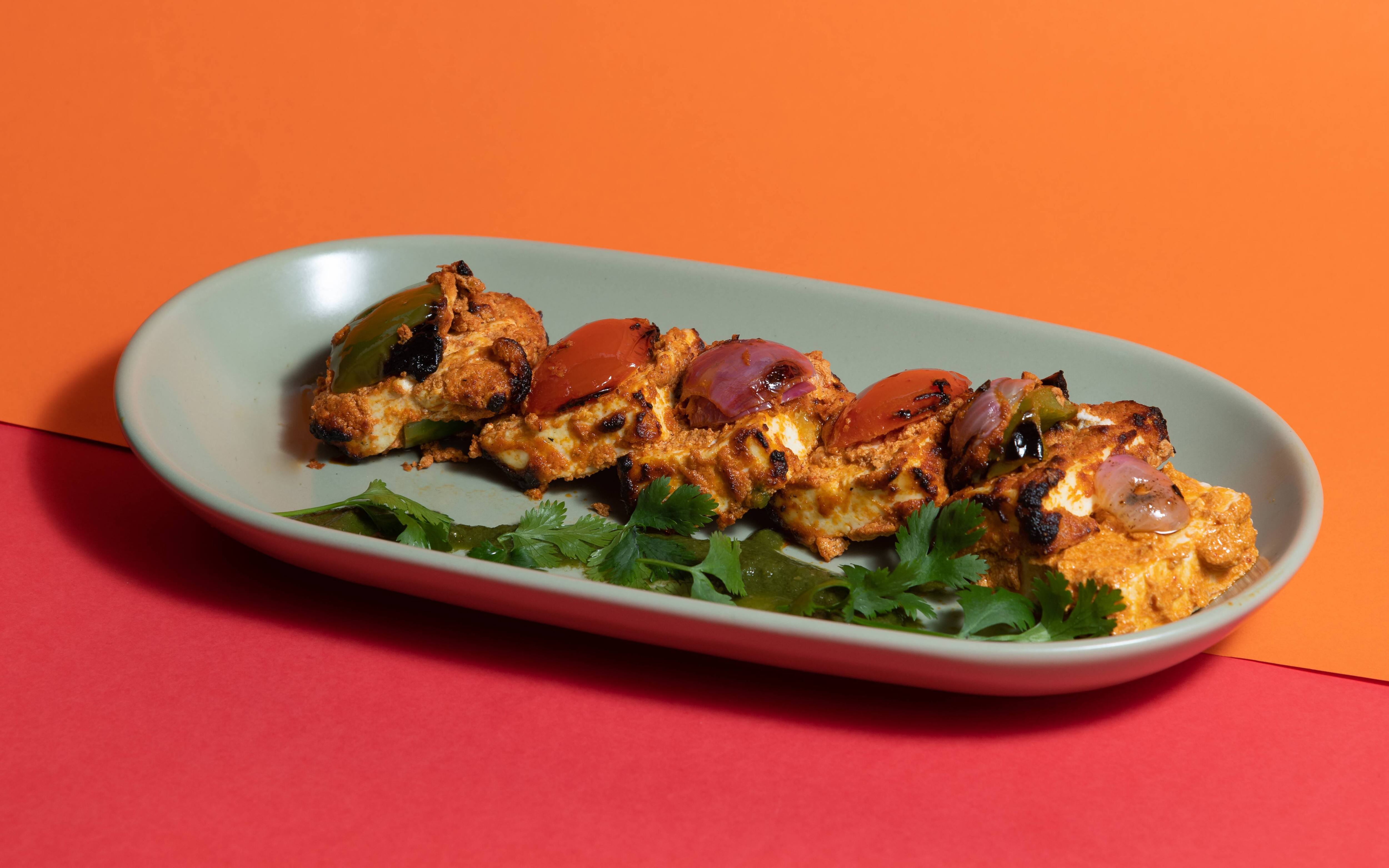 Boondi Raita ₹90 Aloo Pudina Raita ₹90 Roasted Papad ₹20 Veg Raita ₹90 Mushroom Tikka Fresh button mushrooms, marinated in yogurt with signature spices and grilled in a charcoal clay oven [tandoor]. ₹295 Chicken Chilli An iconic Indo Chinese creation, boneless chicken chunks tossed in a ginger, soy and pepper sauce with onions, capsicum and garlic. ₹295 Chilli Paneer An iconic Indo Chinese creation, creamy cottage cheese [paneer] chunks tossed in a ginger, soy & pepper sauce with onions, capsicum and garlic. ₹295 Malai Soya Chaap Protein rich soya chunks, marinated in yogurt, fresh cream & cashew paste with signature spices and grilled in a charcoal clay oven [tandoor]. ₹325 Mushroom Malai Tikka Fresh button mushrooms, marinated in yogurt, fresh cream & cashew paste with signature spices and grilled in a charcoal clay oven [tandoor]. ₹325 Paneer Tikka Creamy paneer chunks, marinated in yogurt with signature spices and grilled in a charcoal clay oven [tandoor]. ₹295