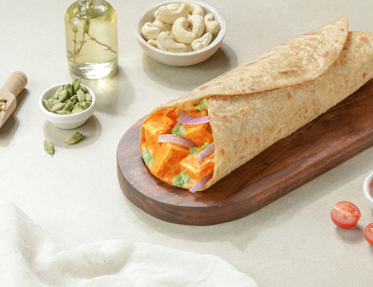 [Small 7"] Paneer tikka with smoky tandoori-style sauce & hari chutney in a mini roll.