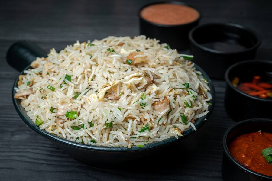 Medium Spicy | | 500 Gms | | Medium spicy | Flavourful Chinese fried rice tossed with soft , tender and succulent pieces of chicken | served with schezwan sauce |
