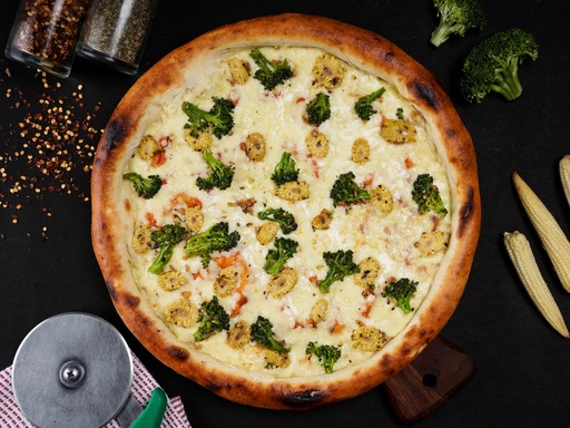 Our signature pizza crust loaded with Classic Mozzarella Cheese + Cheddar Cheese + Mushroom + Baby Corn + Onion + Broccoli