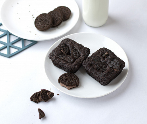 Fudgy handmade dessert made on darkchocolate base & toppled with exotic oreo chunks/similar