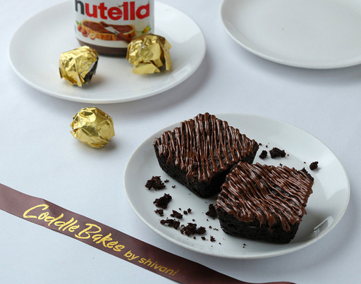 lines of nutella topped on the dark chocolate brownies to make it a less sin affair