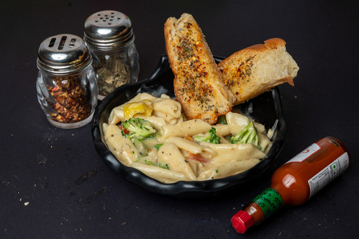 Fresh Toasted Bun with Grilled Special Chicken Patty, Herbs, Tomatoes, Lettuce, Caramelised Onions, Cheese and Sauce.
