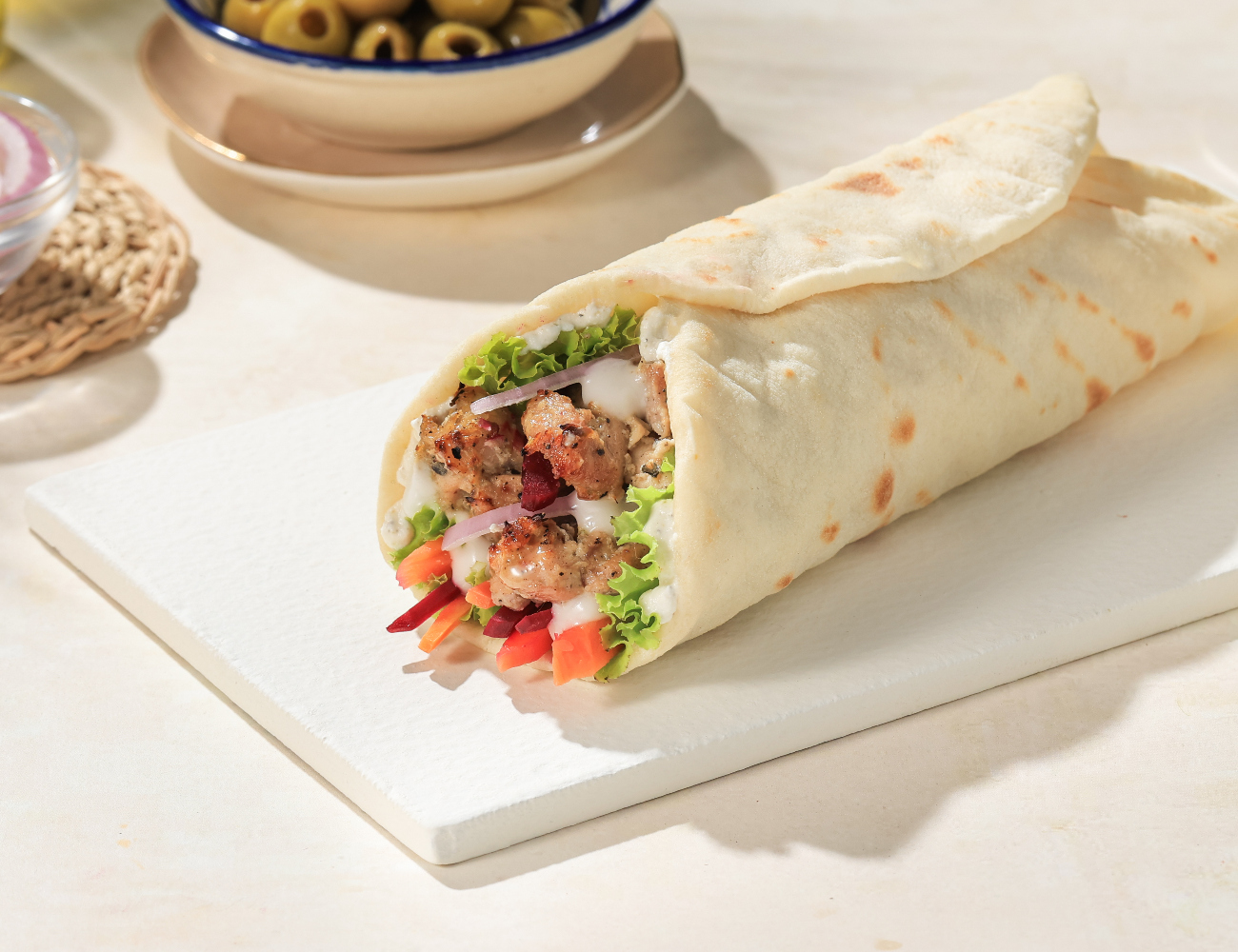 Spicy Chicken | In-house Labneh | Toum Garlic Sauce | Jalapeno | Pickles | Lettuce, Kale, Red Cabbage | Capsicum, Tomato, Onion | Freshly Baked Pita Bread Base