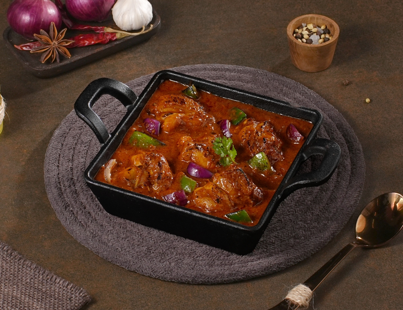 Tender boneless chicken in a spicy curry made using 14 whole spices, freshly ground. A classic delicacy!