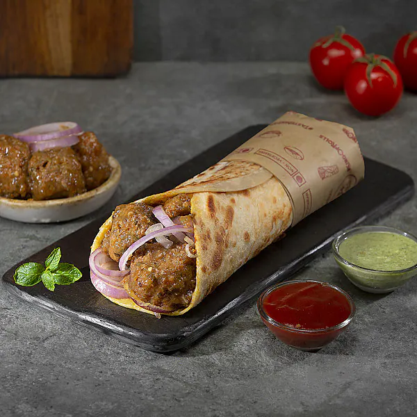 Home style potato preparation, rolled in choice of laccha paratha with mint sauce, onion salad & jalapeno mayo. 215.45gm Kcal / 2.91gm Protein / 4.17gm Fat / 50.11gm Carbohydrates.