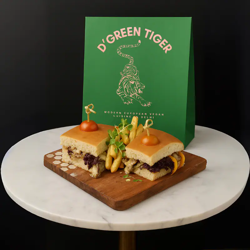 Whole wheat bun courgette mushroom, pickled beets with French fries.