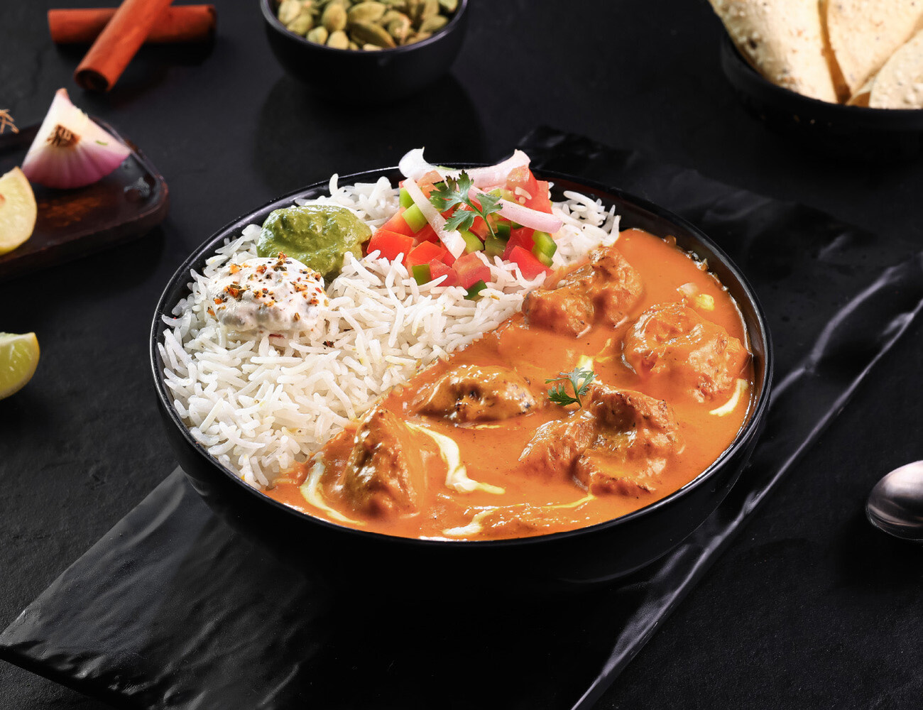 [Serves 1] Comes in a box with 3 Ghee Tikona Parathas + Soft & marinated chicken pieces in an utterly butterly cashew & tomato curry. Punjab da swaad!