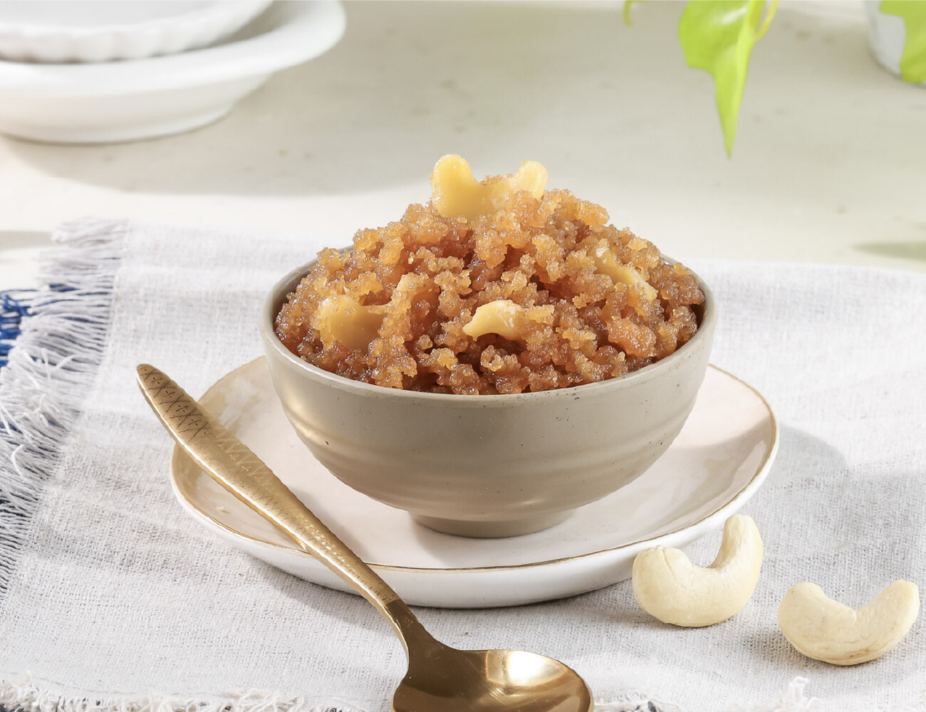 A rich dessert of moong dal roasted in ghee and sugar. It's a melt-in-the-mouth treat with a grainy texture & nutty aroma.