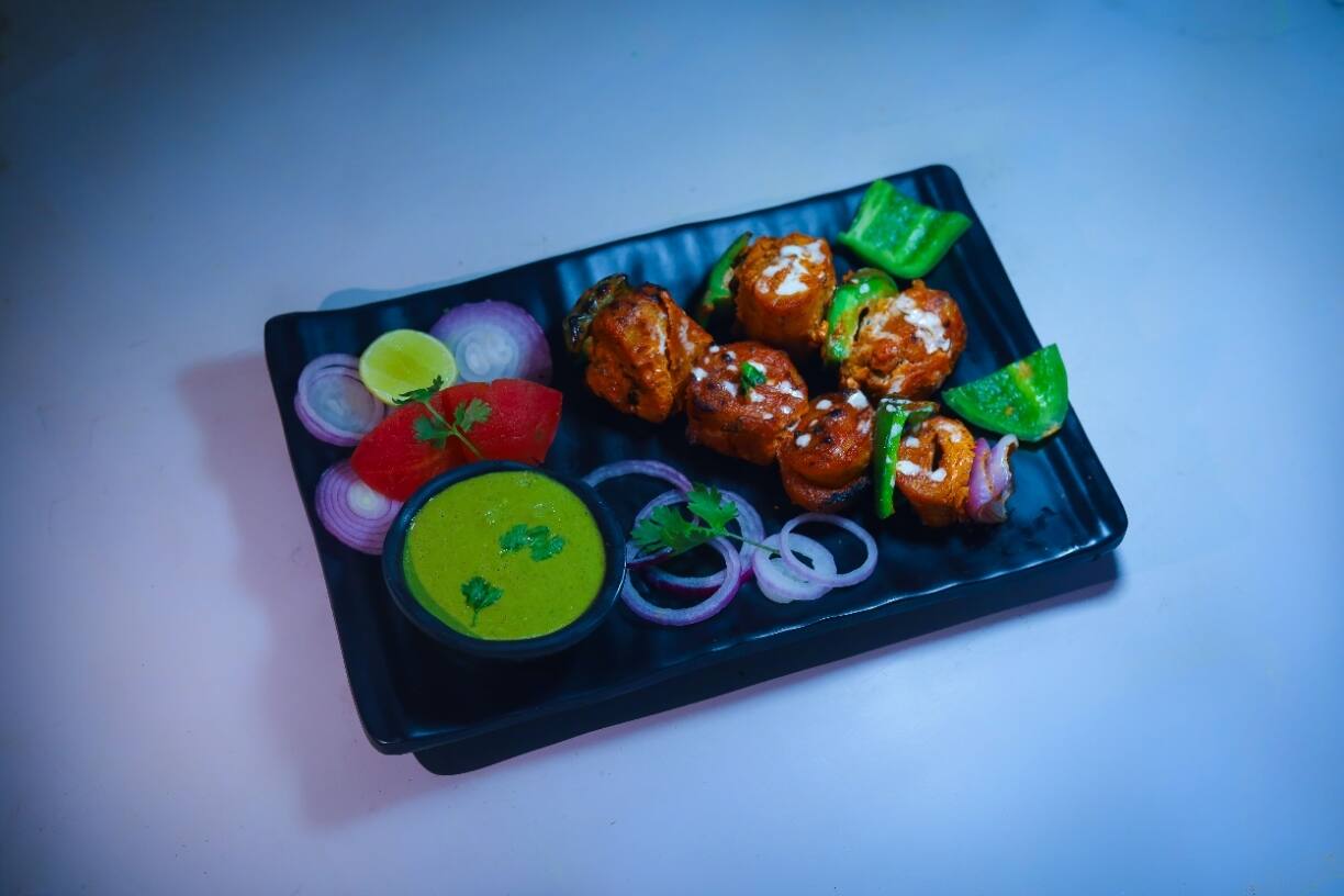 Vegetarian appetizer made with marinated paneer [Indian cottage cheese] cubes that are grilled or baked to perfection. The marinade typically includes yogurt, spices and herbs, giving the paneer a smoky, spicy and flavorful taste.