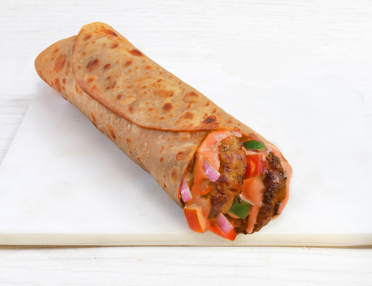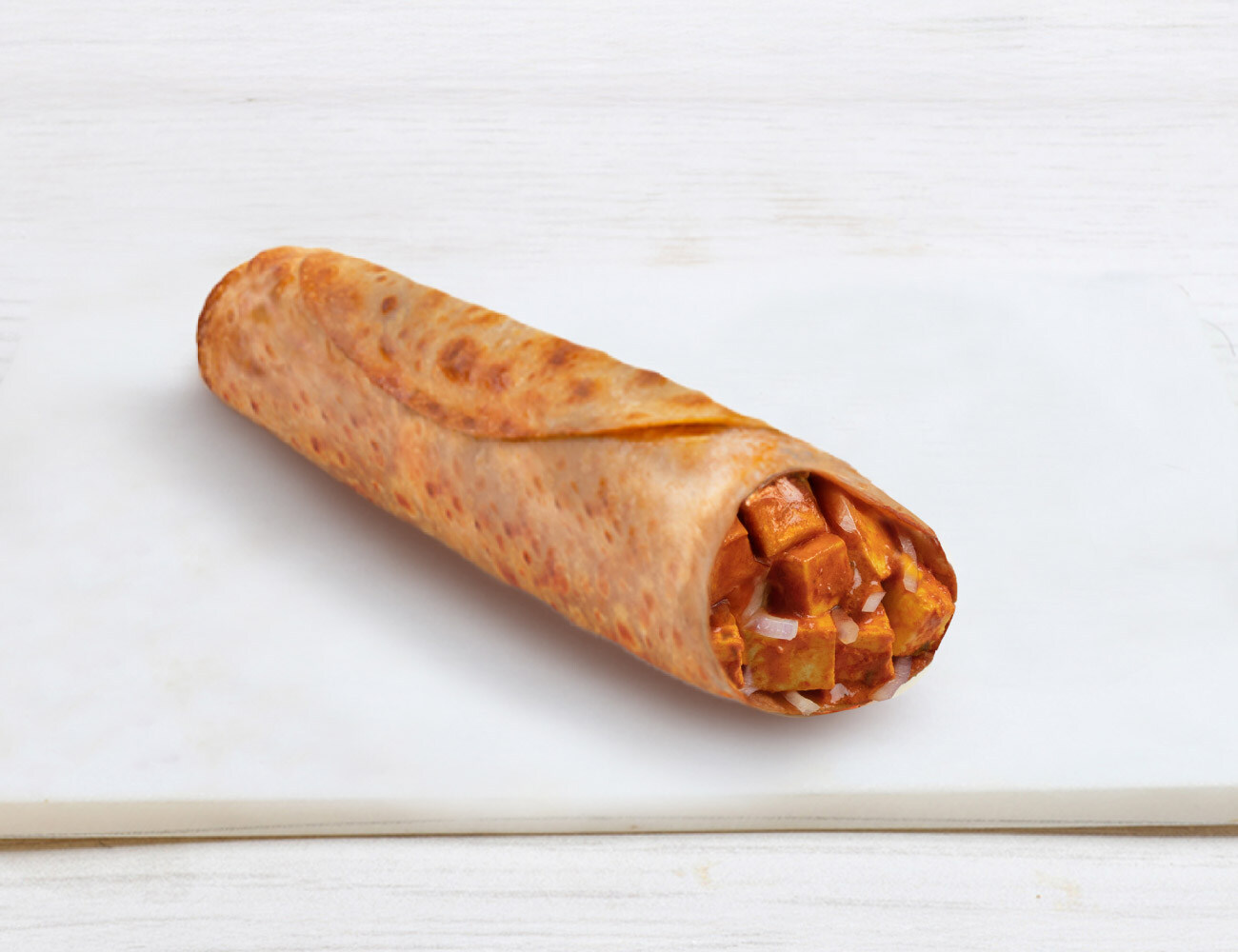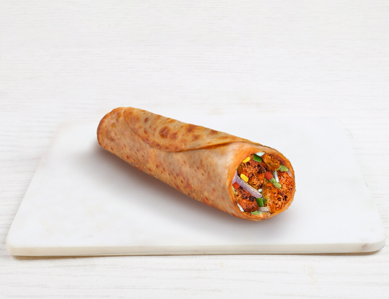 [Big 9" Roll, Full Meal for 1] Served with Tangy Mayo Dip. Tender tandoori chicken infused with smoky flavours, crisp onions and green chutney, served in a roll.