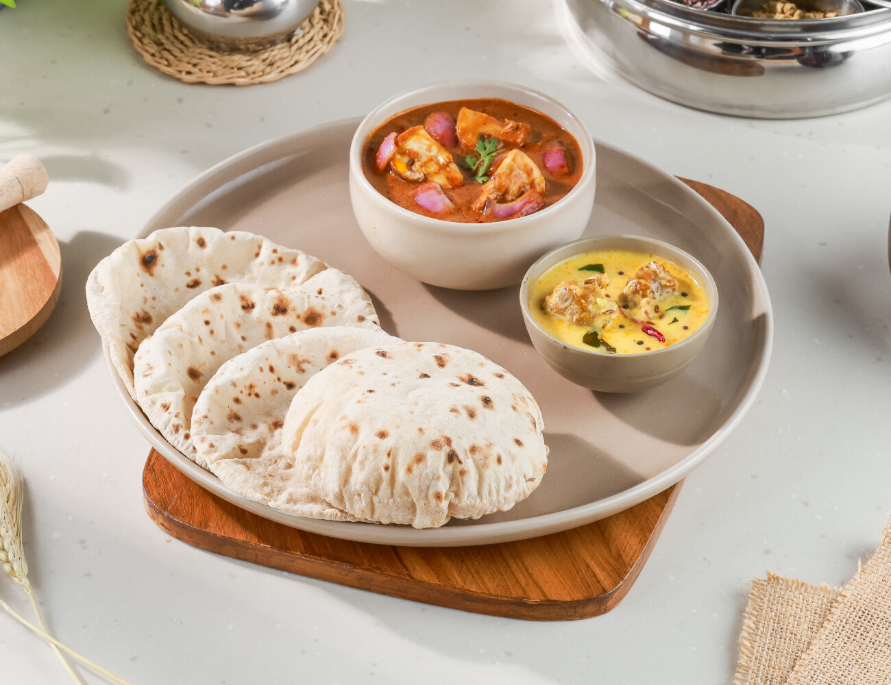 Flavourful masaledaar Chole + Yellow Dal/Kadhi Pakoda + Phulkas/Parathas/Rice.