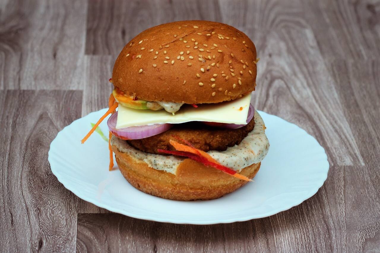 A wholesome burger made with potato patties, layered with a tangy chutney and accompanied with a crisp salad [Subject to Availability].