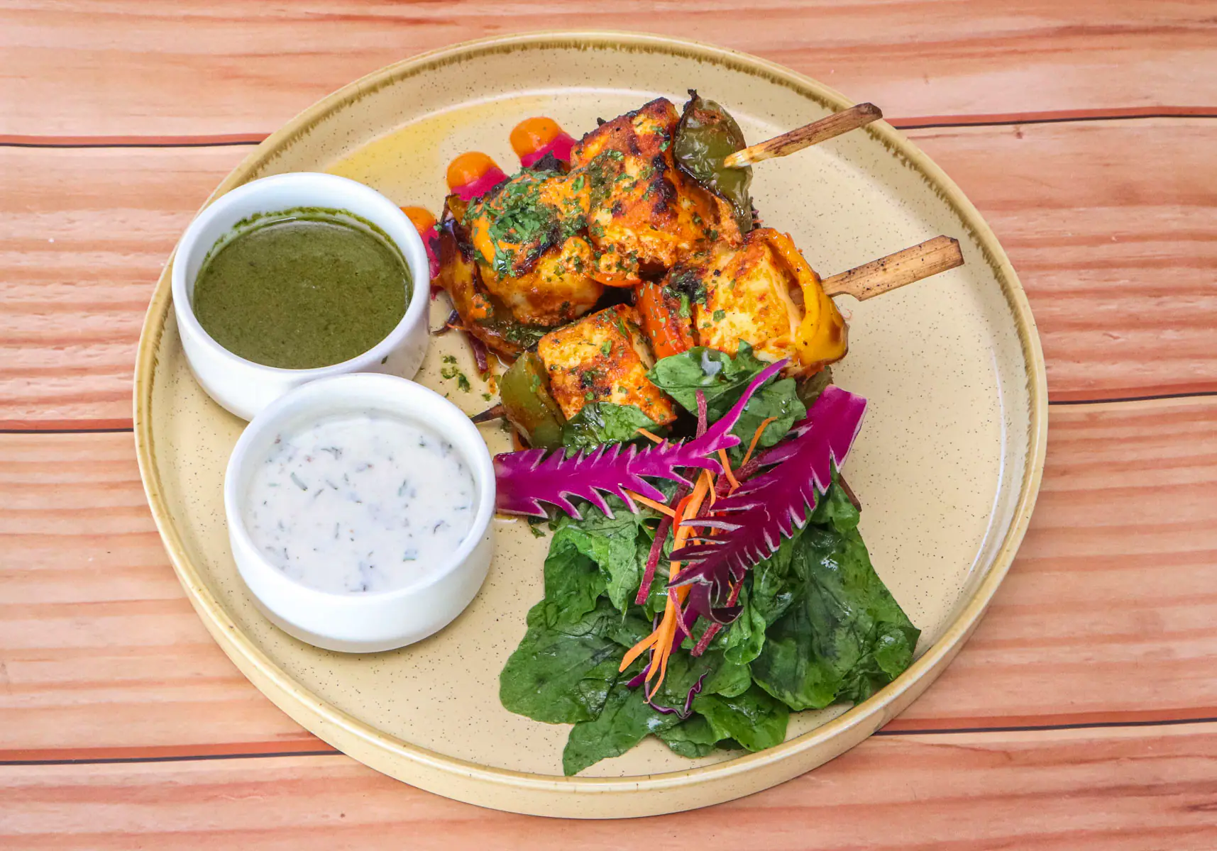 Hummus With Mutton Keema Served with homemade focaccia bread and mutton keema. ₹390 Fried Calamari Served with wasabi mayonnaise. ₹490 New York Chicken Wings Grilled chicken wings with spicy homemade sauce. ₹490 Mutton Kebab (Mutton minced marinated with spices,yogurt garlic mint sauce, grated tomato & chill&bread) ₹550 Paneer Seekh Marinate with ten secrete spices, served with rucola salad and mint sauce. ₹350 Chicken Seekh Yakitori Marinate with peanut butter sauce served with arugula and fried potato. ₹550 Spicy Potato Wedges Marinate with maple syrup, rosemary and served with jalapeno mayonnaise and fried potato. ₹280 Hummus Mushroom Served with homemade focaccia bread and three types of mushroom. ₹350 Fried Prawns Fried prawns with penko crumbs served with wasabi mayonnaise sauce ₹590 Mutton Burger Burger served with lettuce, tomato, onion, beetroot, jalapeno with yellow Cheddar and fries. ₹480