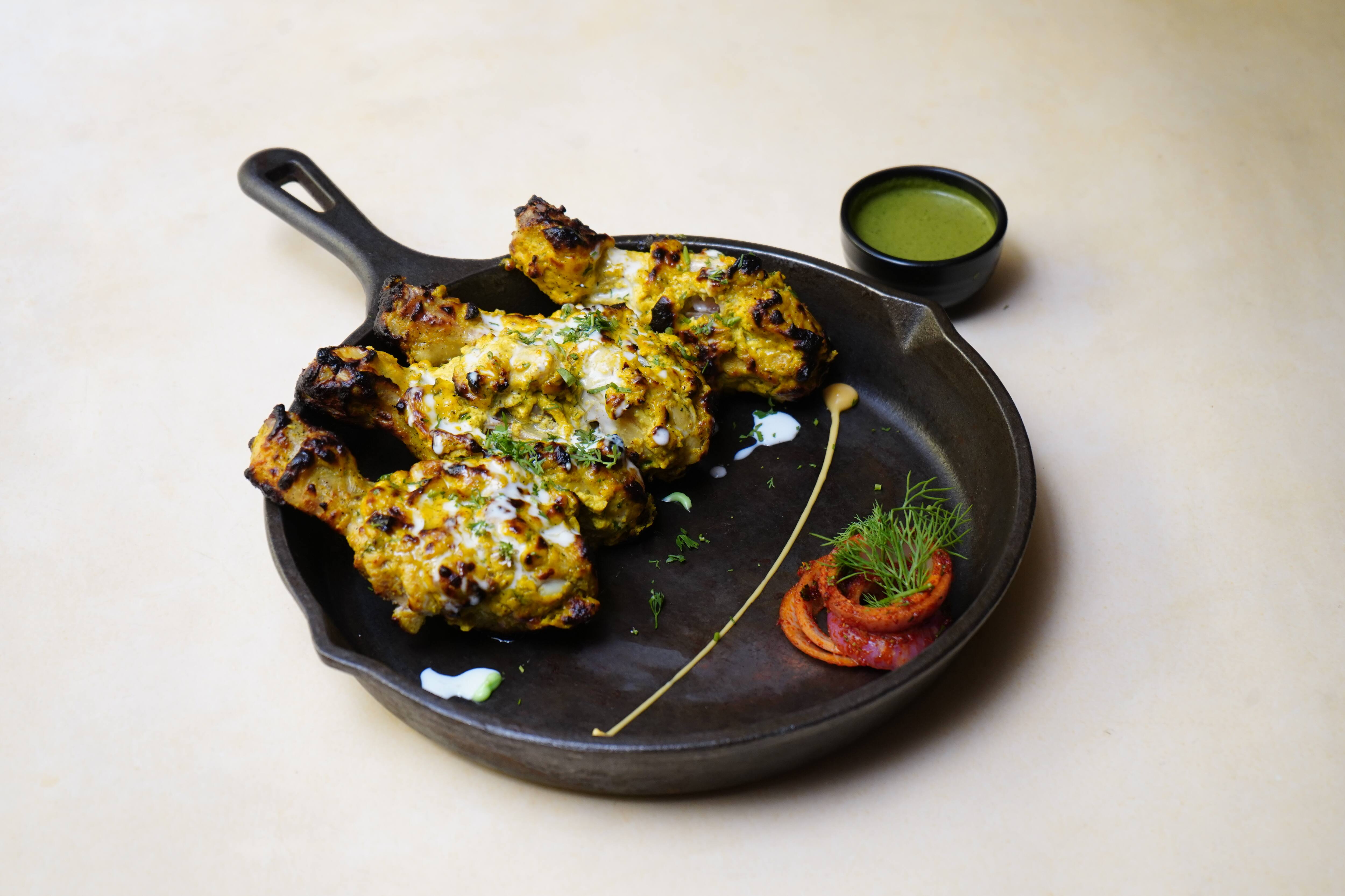 A succulent paneer tikka infused with aromatic flavors of garlic, coriander and mint leaves.