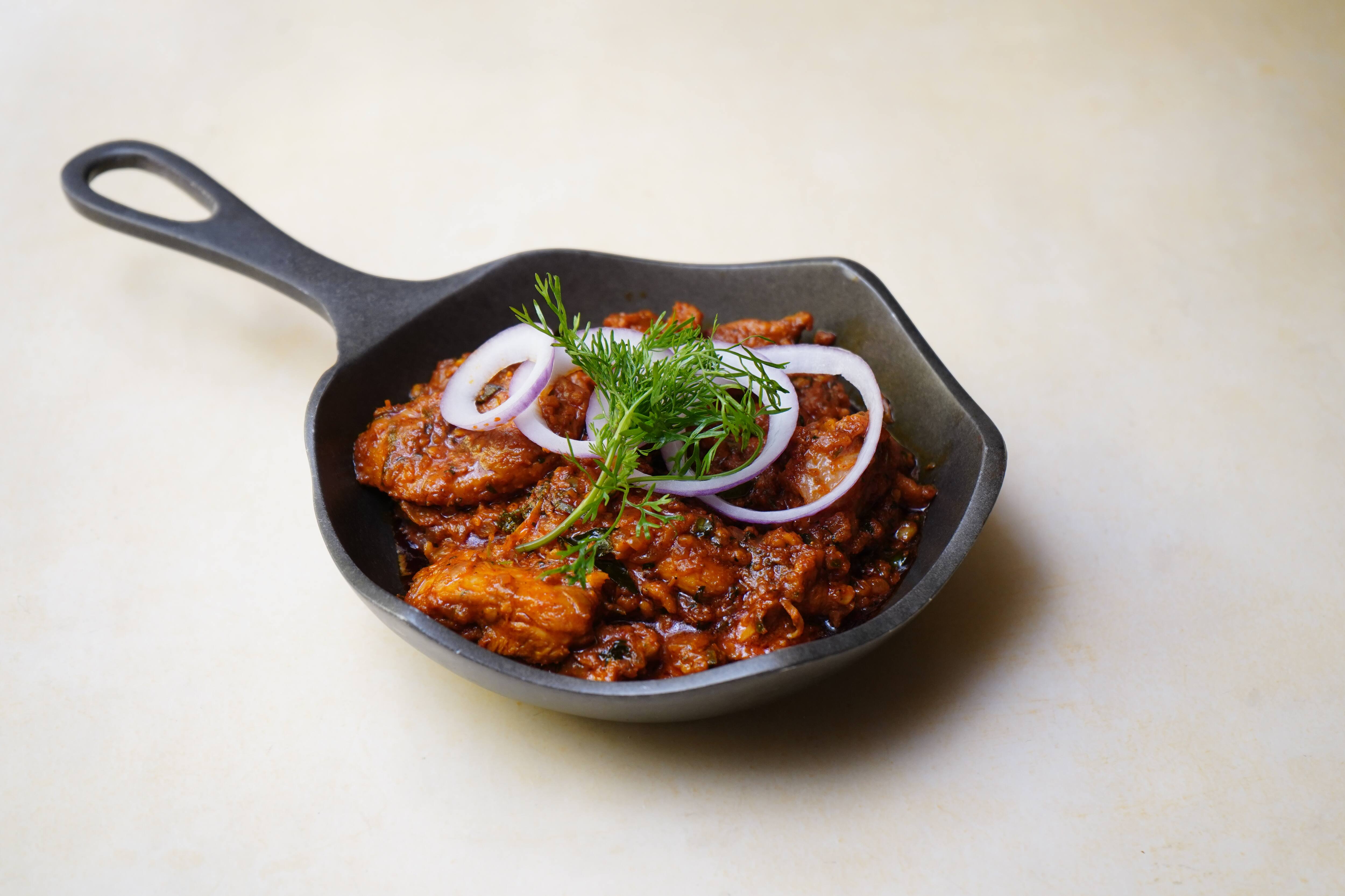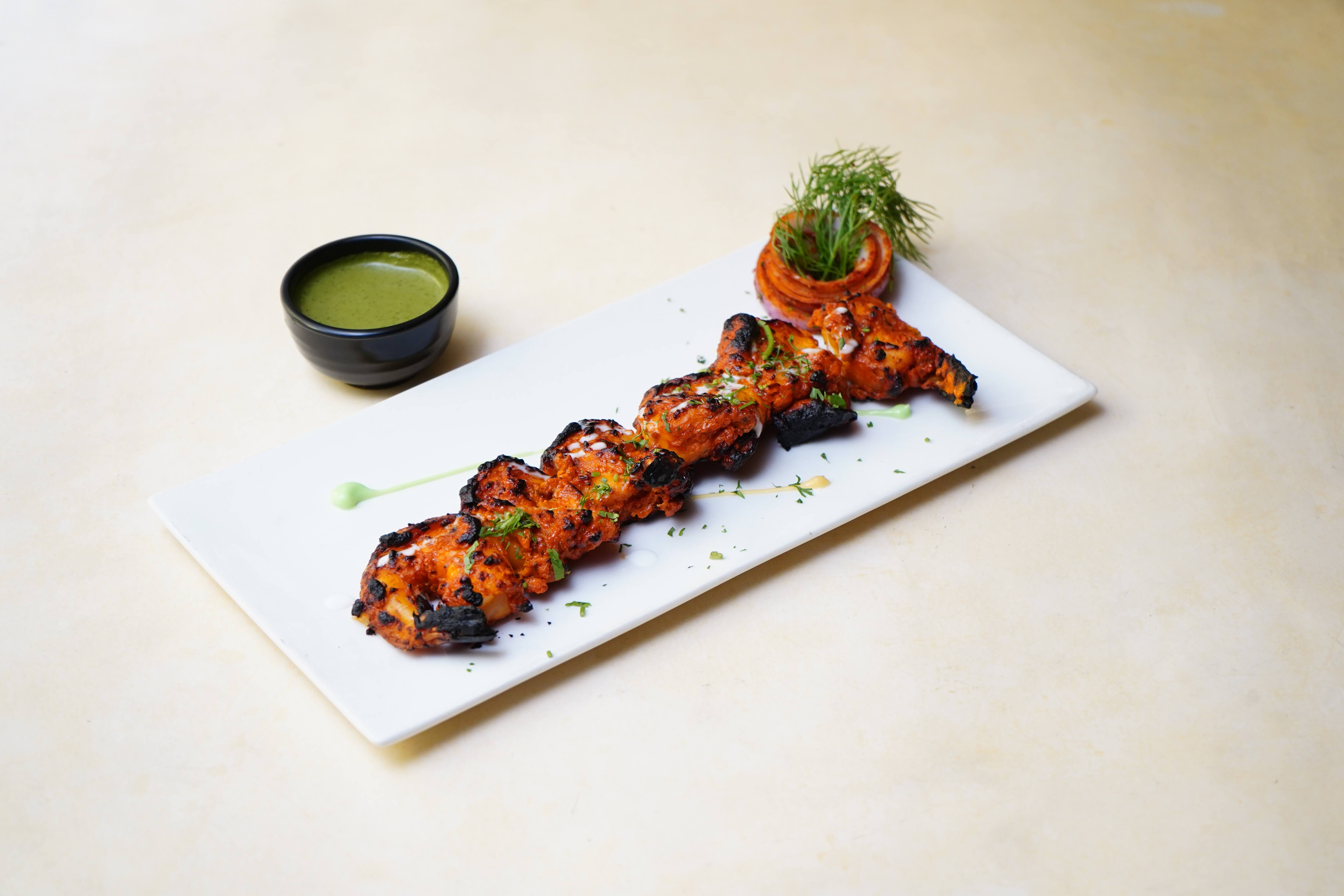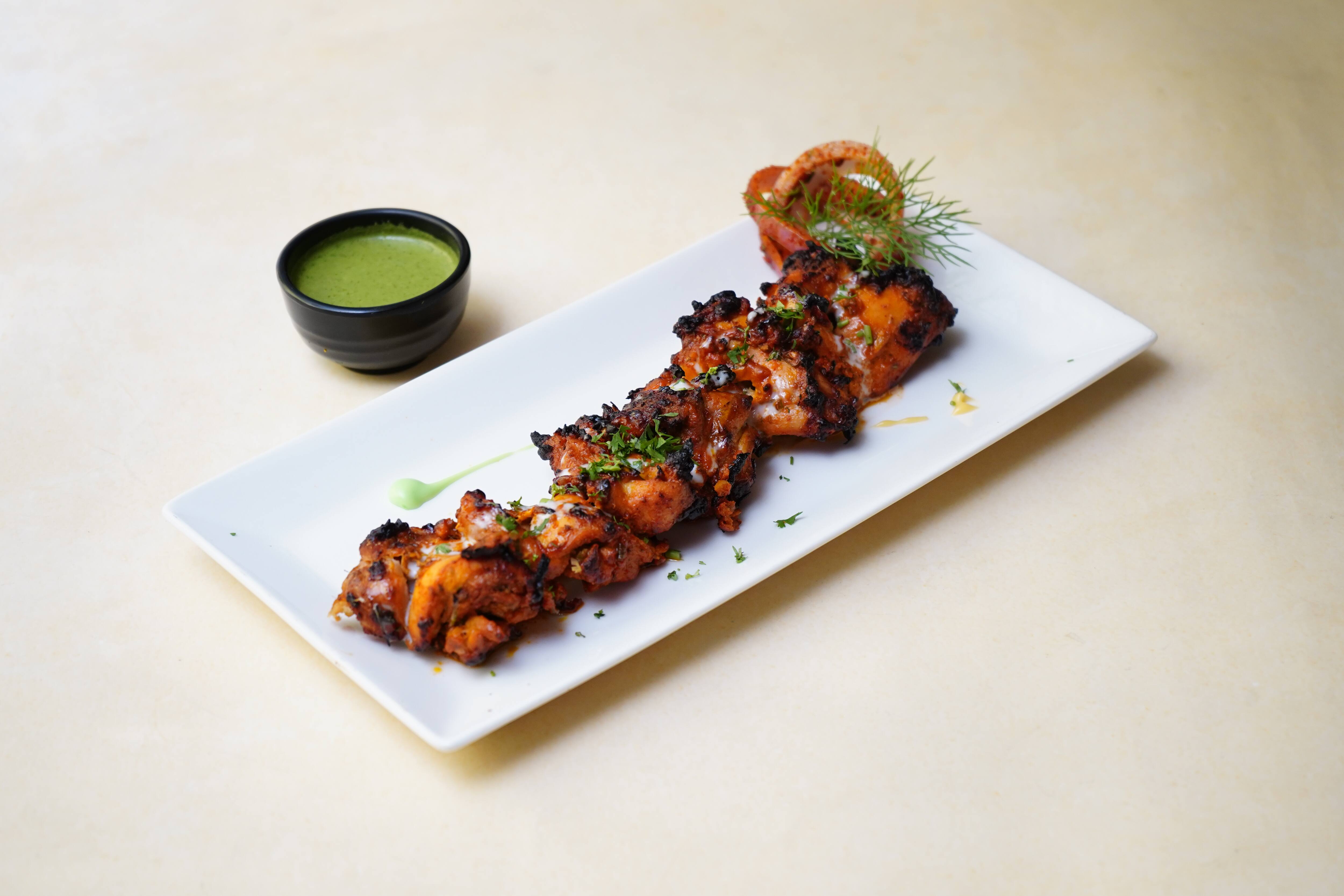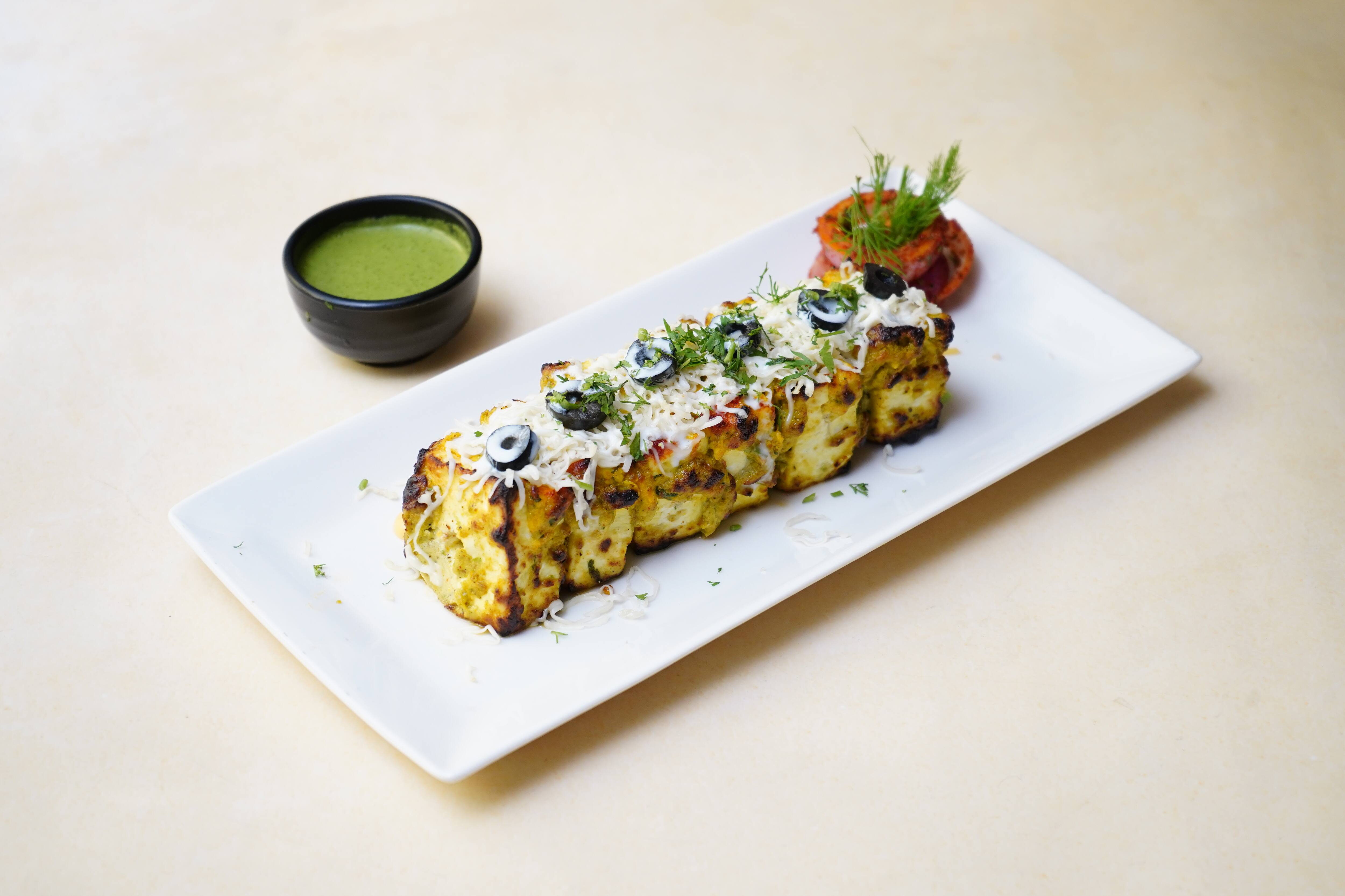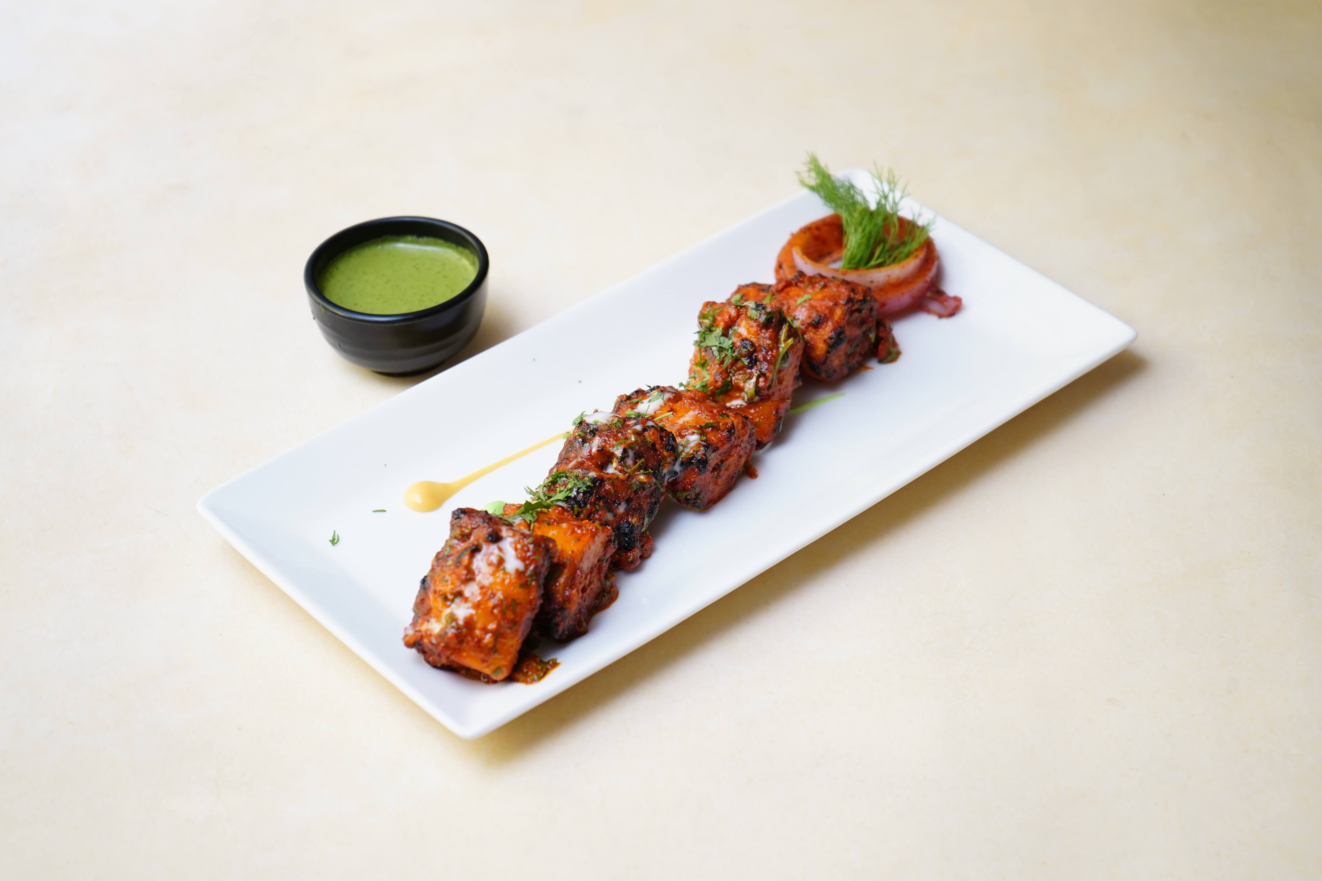 A spicy and flavorful dish of tender paneer cubes marinated in a blend of red chilli and aromatic spices and grilled to perfection.