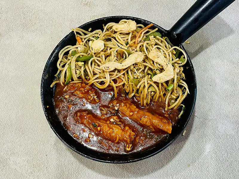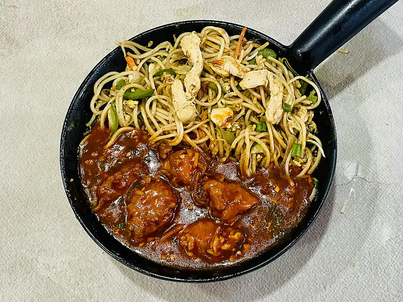 Deliciously crispy fried paneer tossed in a flavorful manchurian sauce, served with your choice of noodles.