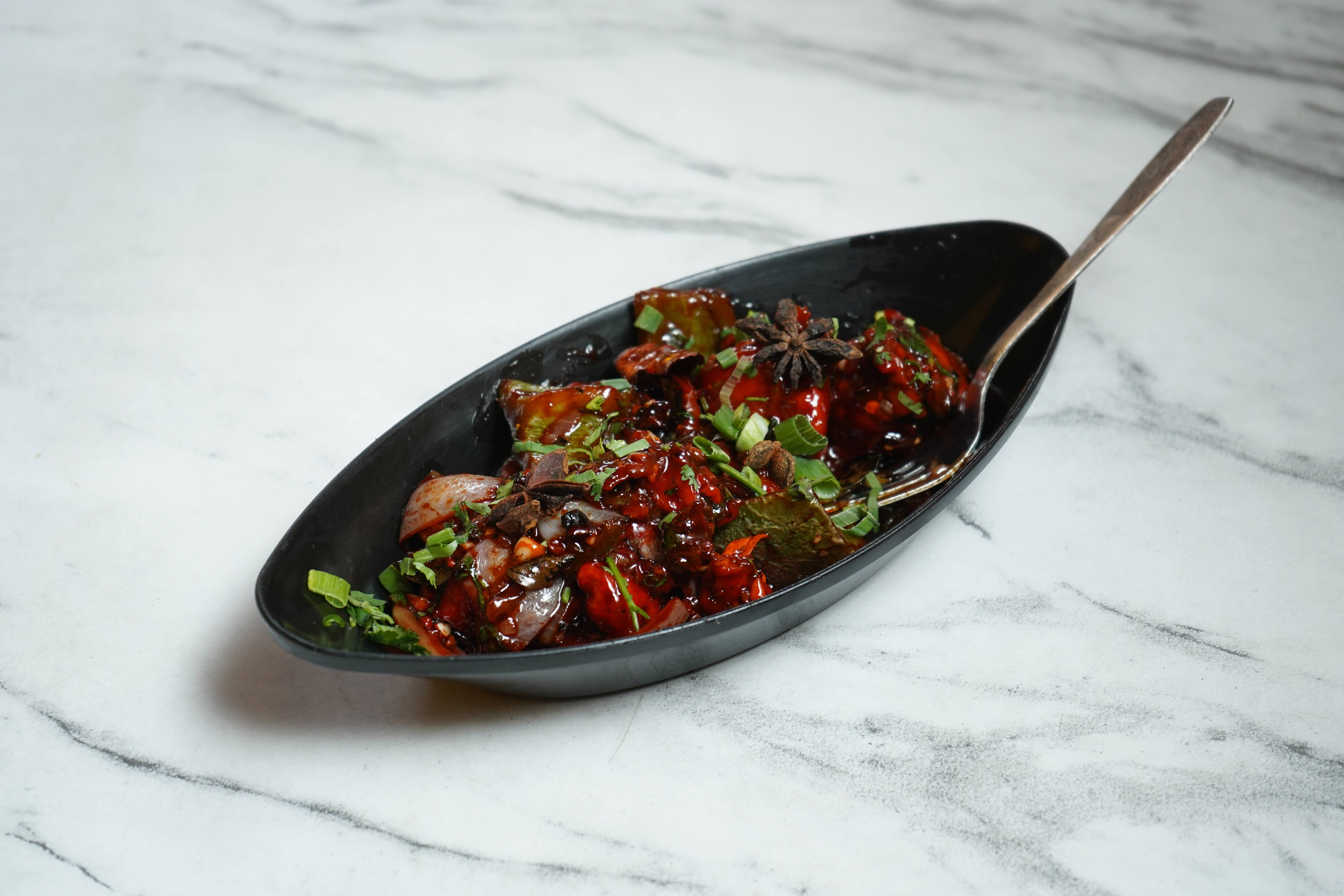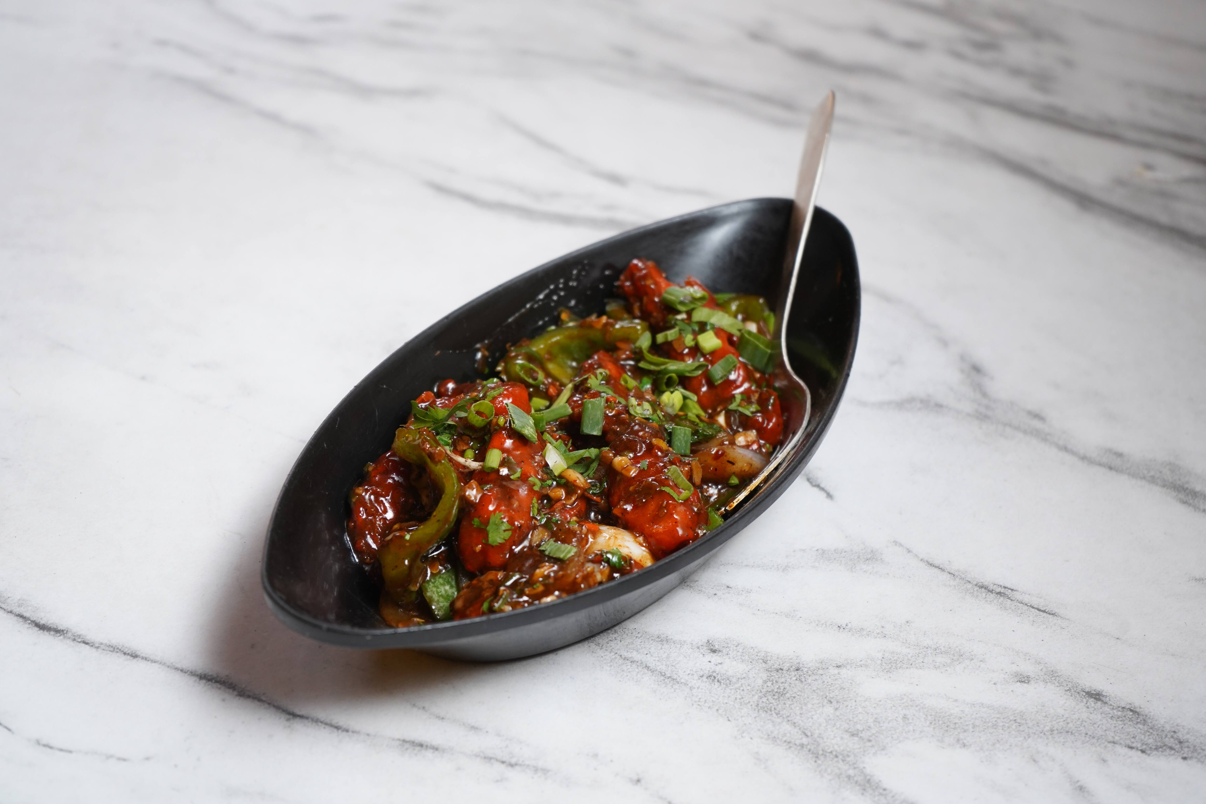 Delicious chicken cooked slowly on vertical shawarma machine flavoured with garlic mayonnaise , malai tikka sauce. Served with crispy mix lettuce salad and kuboos roti