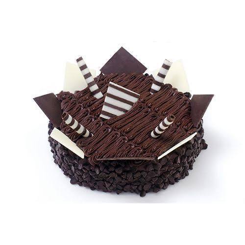 Base chocolate sponge layer 1 st truffle & coffee mix layer 2 nd truffle & coffee mix topping truffle & coffee mix , side choco chips & garnish