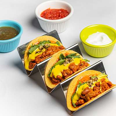 Serves 1 | 3 Pieces | Soft Shell Taco featuring hearty beans, fiery jalapeno, delicate arugula, and velvety cheese