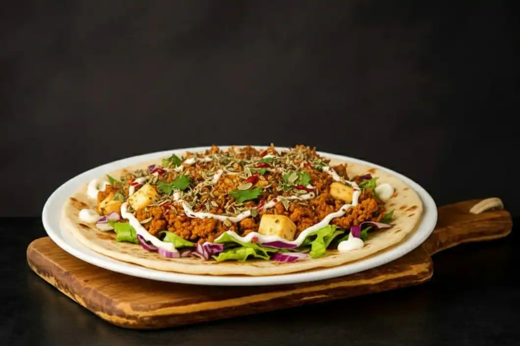 Crispy fried Manchurian tossed in a garlic sauce with sliced vegetable