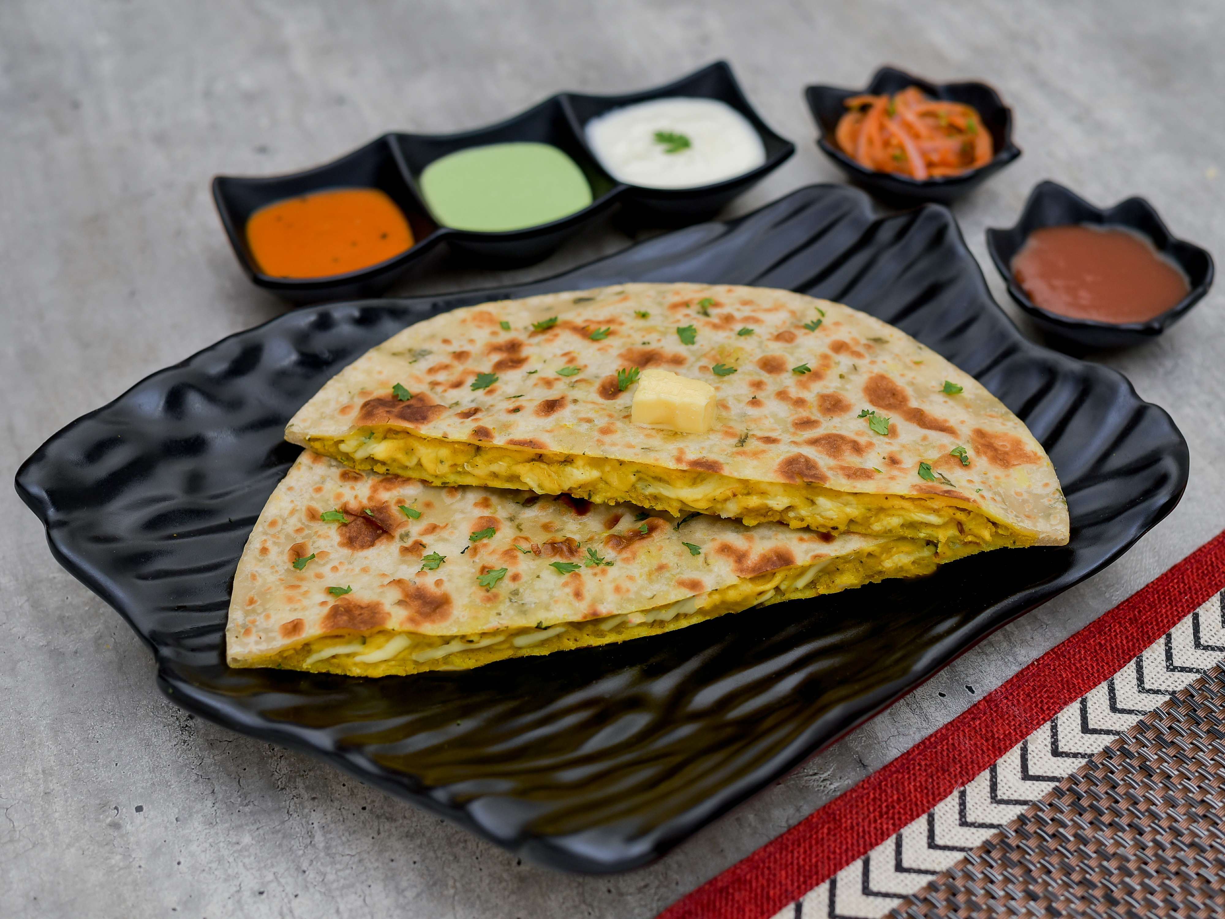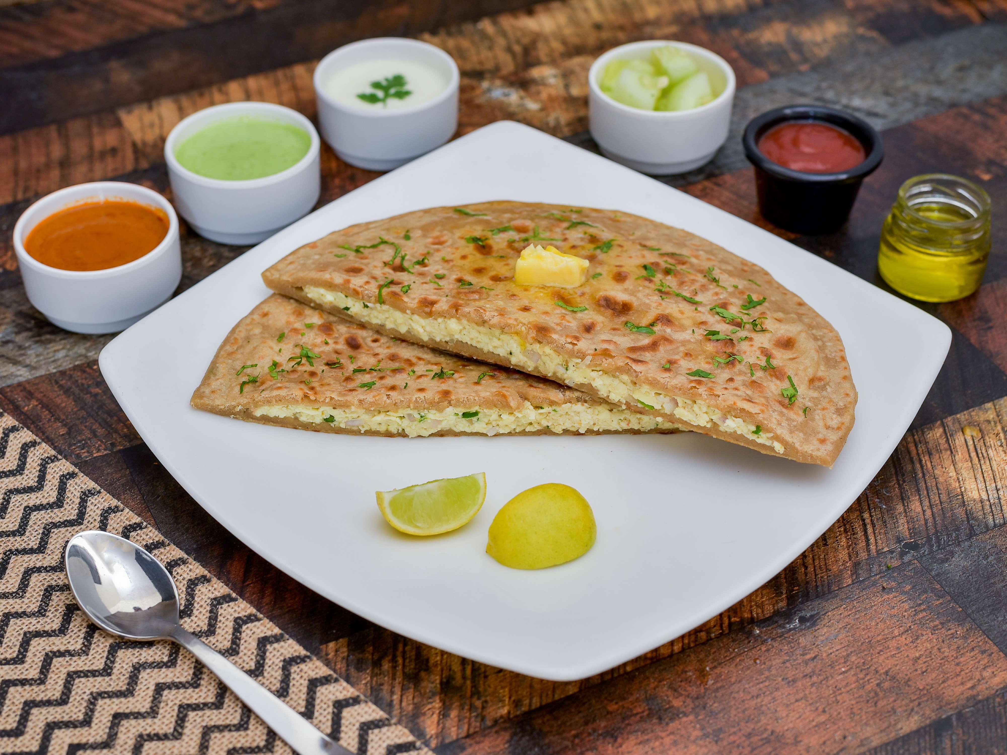 A generous stuffing of soft paneer cooked with our Chef secret ingredients makes this all-purpose flour paratha a delight for all. You will be coming back for more!