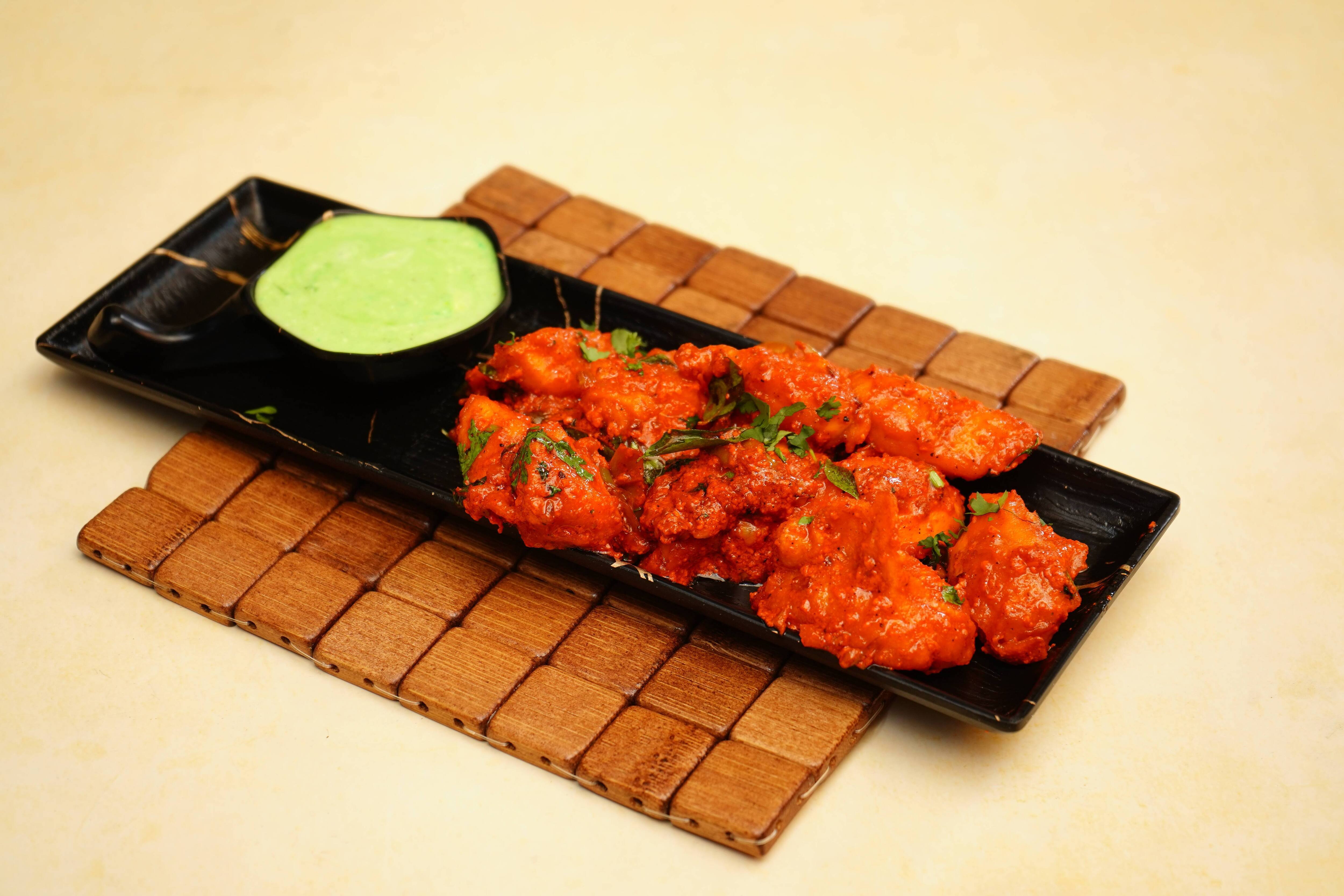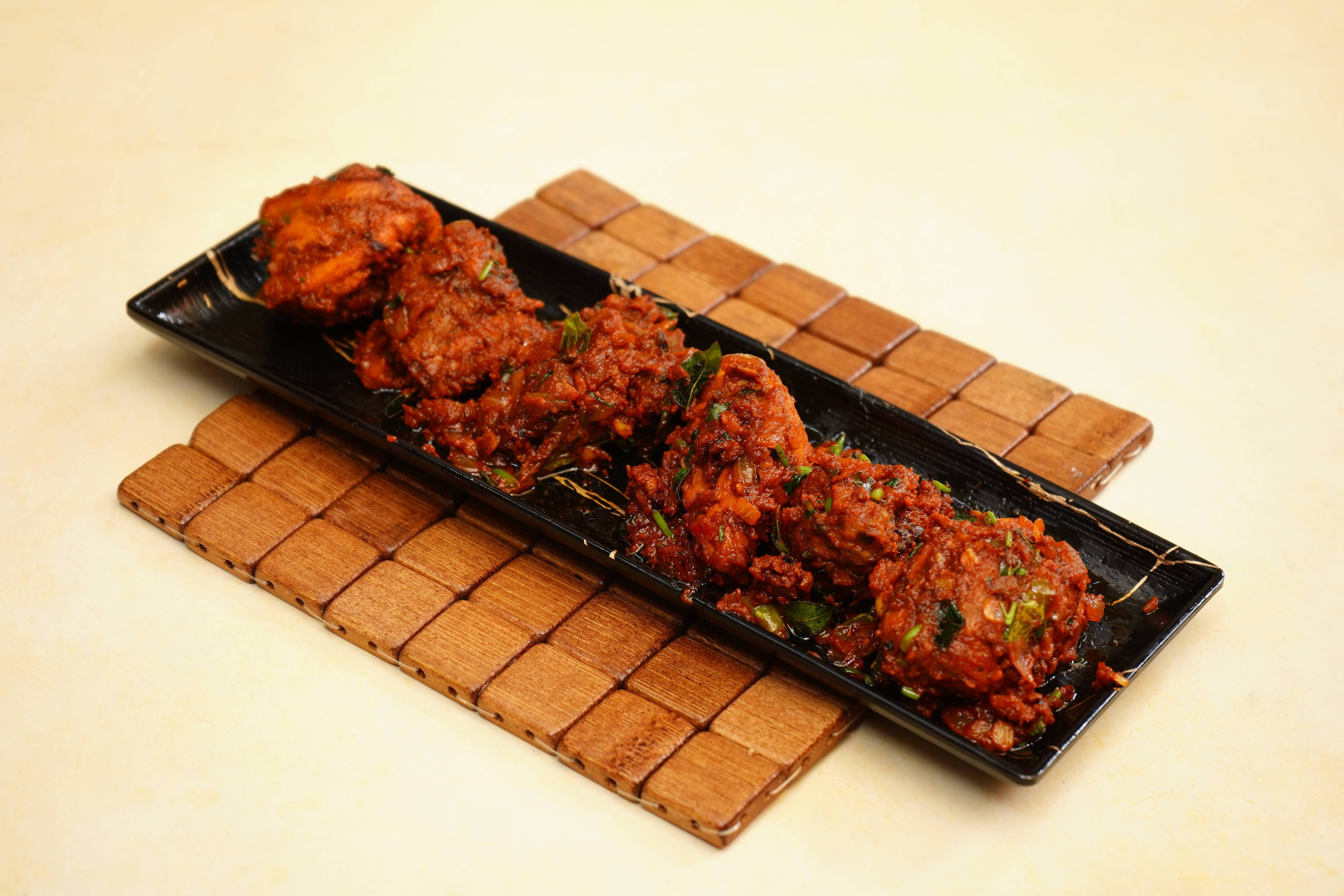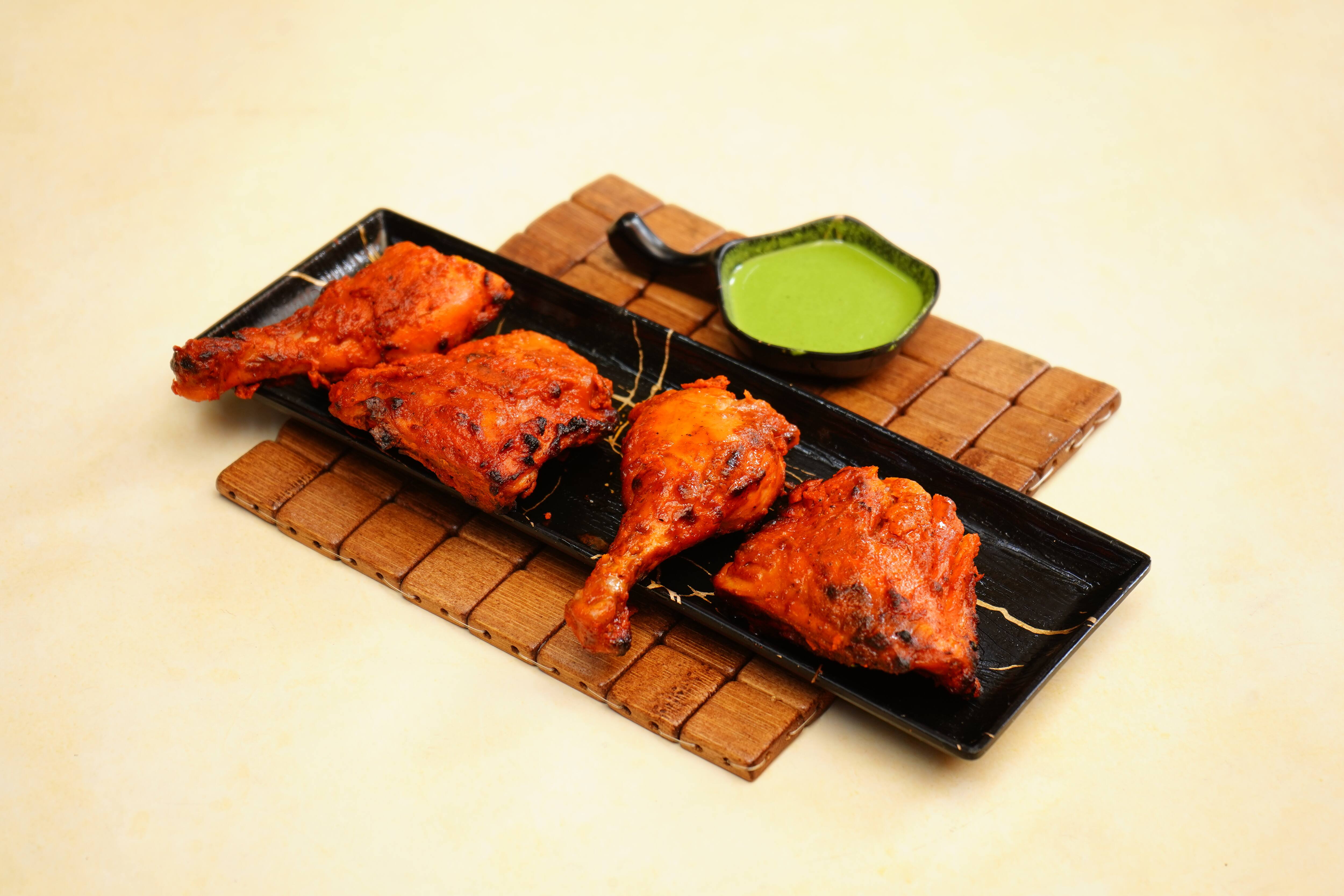 Onion Salad ₹12 Salan ₹26 Raita ₹16 Pepper Chicken Bone ₹366 Hot Spicy Chicken Wings ₹366 Egg 65 Egg marinated with our special spices and pan fried to perfection. These crispy egg are then tossed with a savory spicy sauce. ₹296 Spicy Chicken Fry Bone ₹356 Chilli Chicken Boneless Boneless chicken chunks are marinated in spice mixed and lemon are stir fried with crunchy onion, pepper and chilies tossed in our special sauce. ₹366 Garlic Chicken Boneless ₹376 Chicken Tangdi Chicken thigh piece is marinated in yogurt and TAB special spices and cooked in clay oven called tandoor. Served with mint chutney and salad. [Salad-Subject to Availability] ₹346