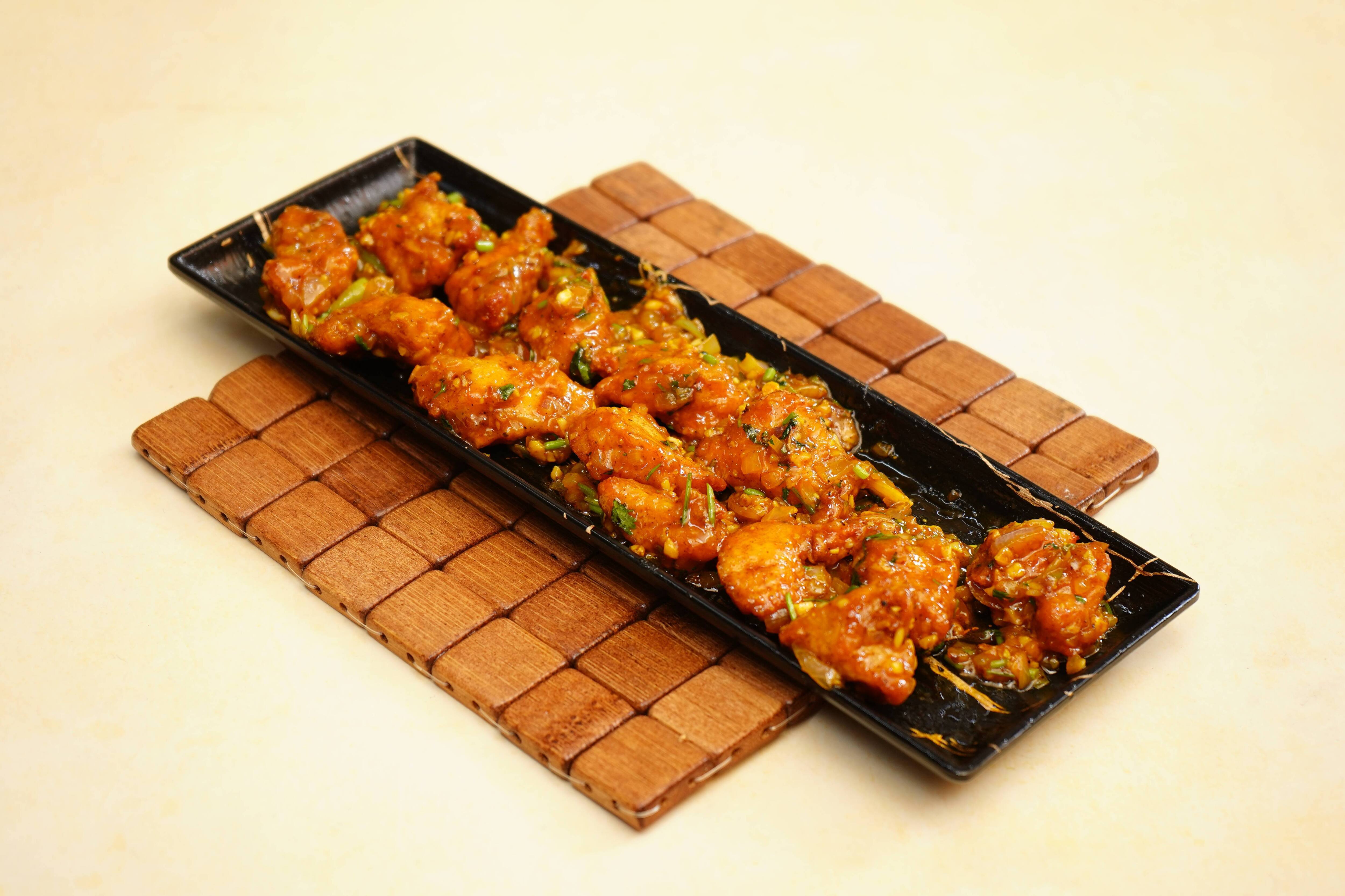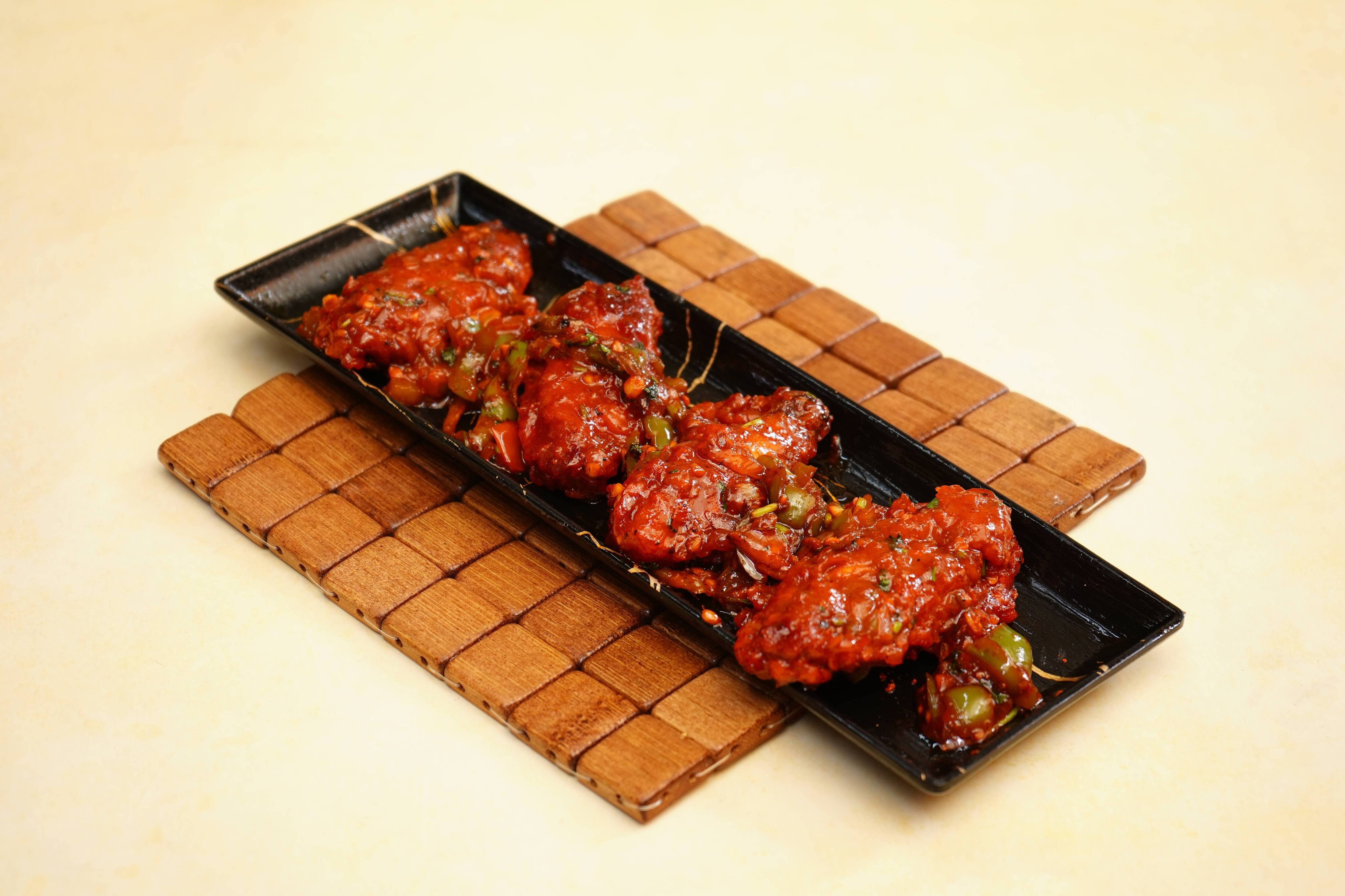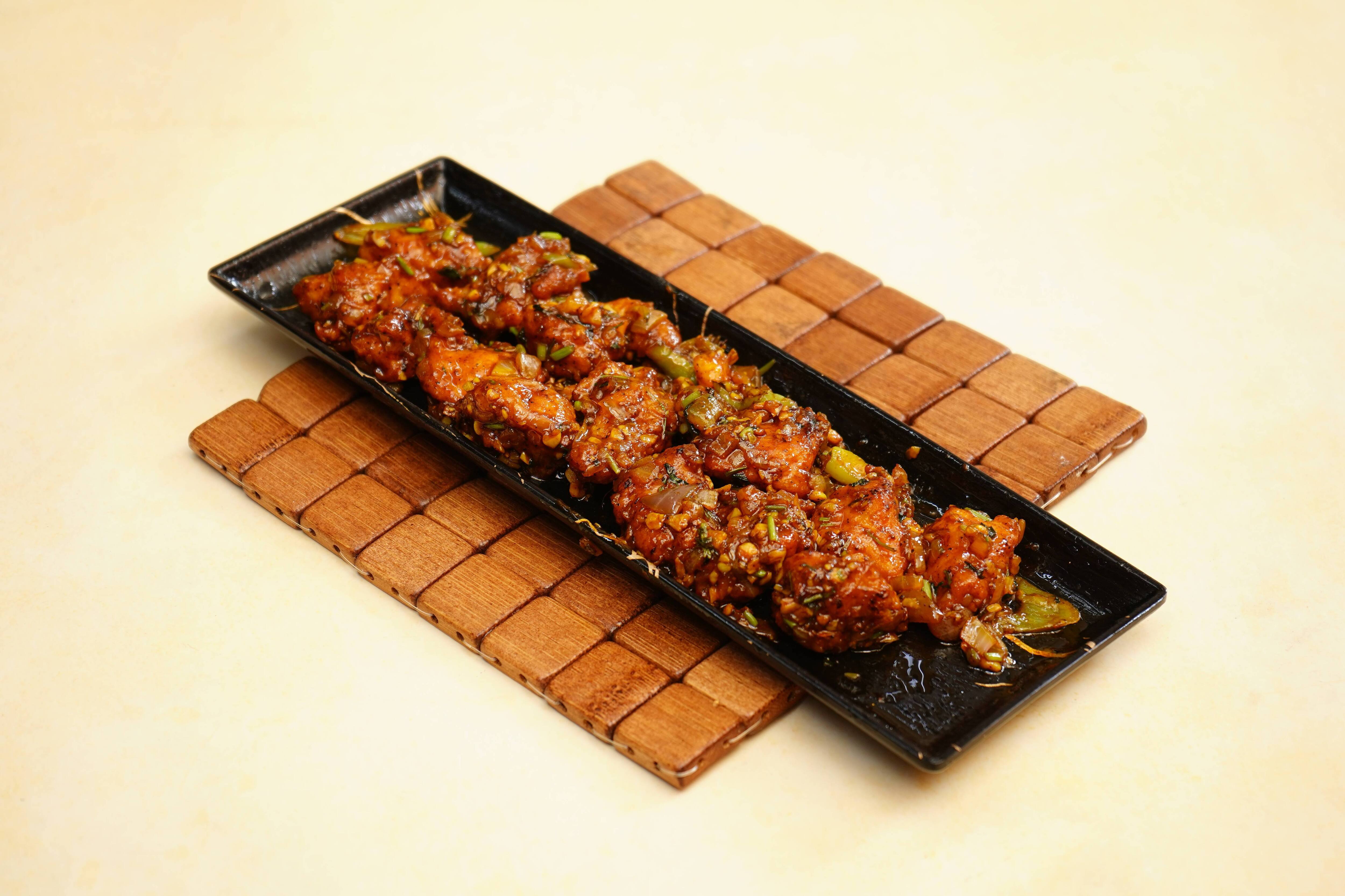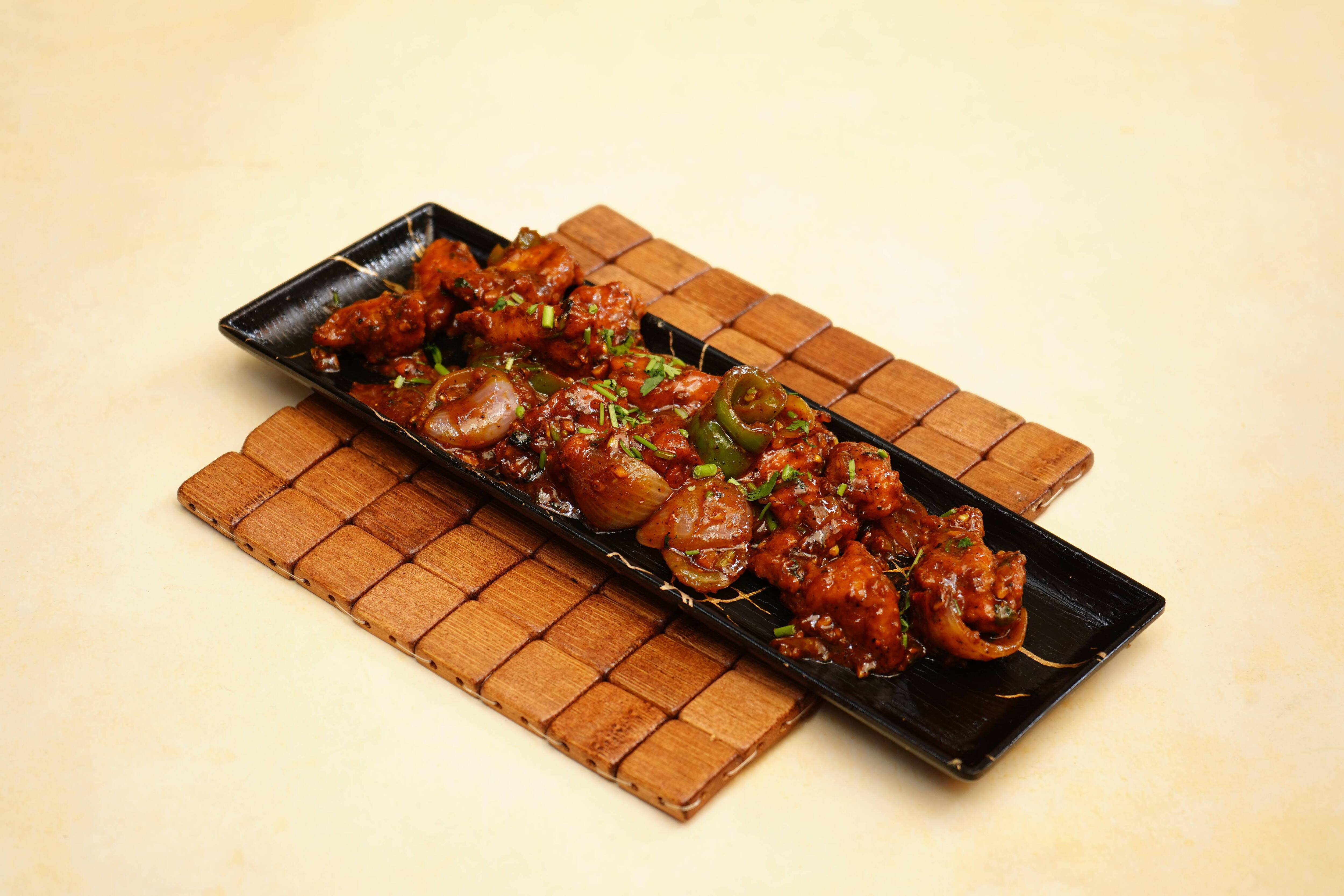 Onion Salad ₹12 Salan ₹26 Raita ₹16 Pepper Chicken Bone ₹366 Hot Spicy Chicken Wings ₹366 Egg 65 Egg marinated with our special spices and pan fried to perfection. These crispy egg are then tossed with a savory spicy sauce. ₹296 Spicy Chicken Fry Bone ₹356 Chilli Chicken Boneless Boneless chicken chunks are marinated in spice mixed and lemon are stir fried with crunchy onion, pepper and chilies tossed in our special sauce. ₹366 Garlic Chicken Boneless ₹376 Chicken Tangdi Chicken thigh piece is marinated in yogurt and TAB special spices and cooked in clay oven called tandoor. Served with mint chutney and salad. [Salad-Subject to Availability] ₹346