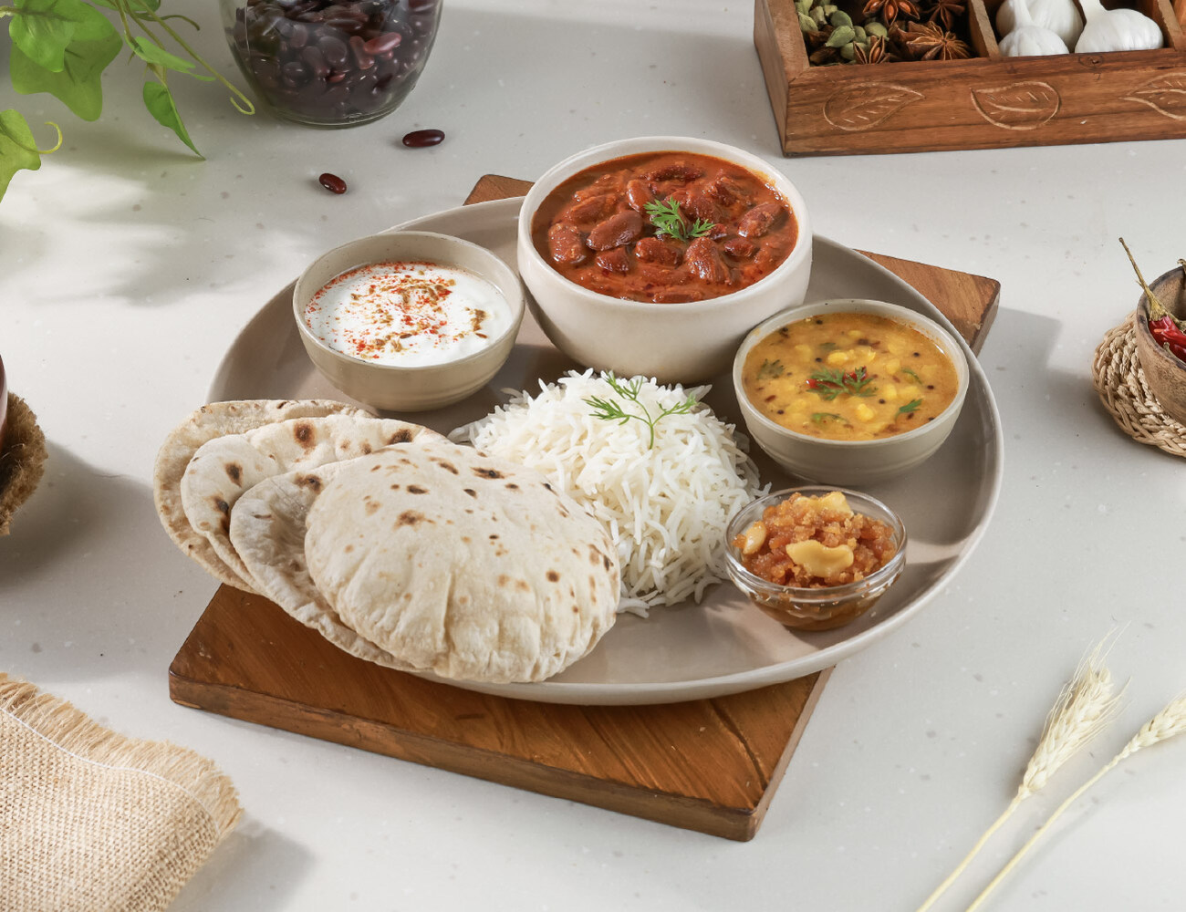 Flavourful masaledaar Chole + Yellow Dal/Kadhi Pakoda + Phulkas/Parathas/Rice.