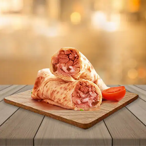 Crispy grilled chicken wrapped in thin Pita bread with garlic sauce, sumac onions, tomatoes, lettuce and tahini. Served with Toum.
