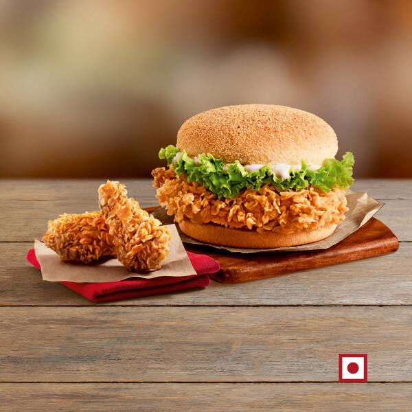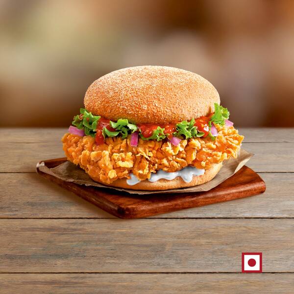 Colonel's signature Zinger chicken, an extra crispy fillet packed in a soft corn bun with lettuce & mayo!