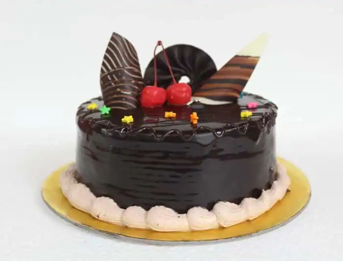 Chocolate sponge with white rich cream layering and chocolate flakes all around the cake to make it dense with chocolate scrapings. Good to share as a couple. No message/greetings can be written on the cake due to Its small Size. No knife with this cake order.