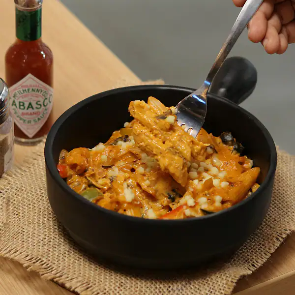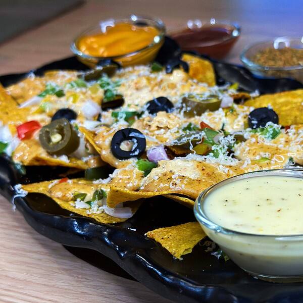 Tomato, capsicum, red paprika, olive, with cheese salsa sauce & tomato sauce.