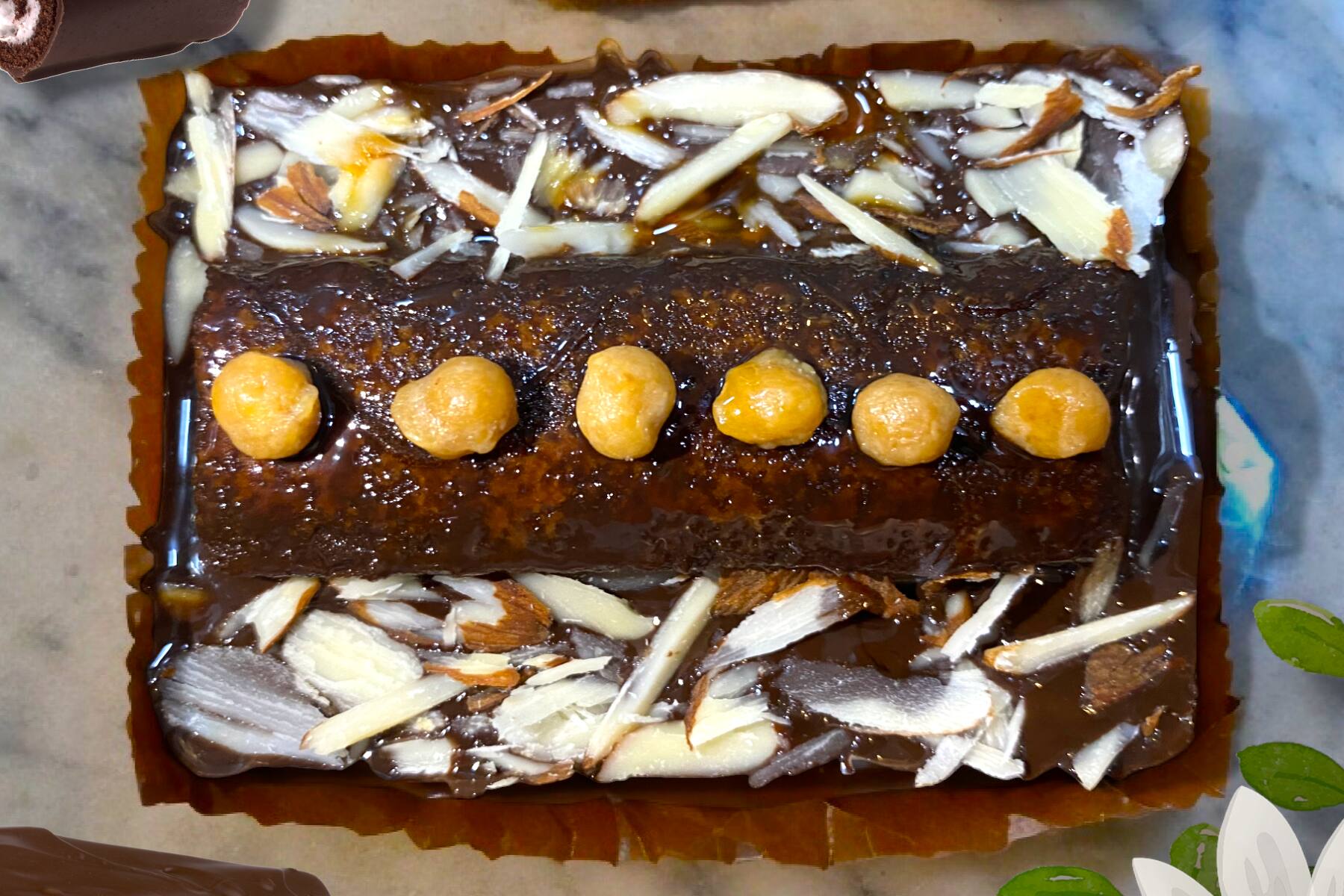 Assorted swiss chocolate base bar, topped with delicious chocolate, caramel sauce and almonds.